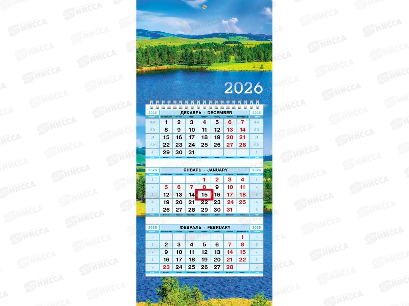 Календарь квартальный 2026 ХАТ 3 бл.ока, 1 гребень Гармония природы, 34317 (195х440) *30