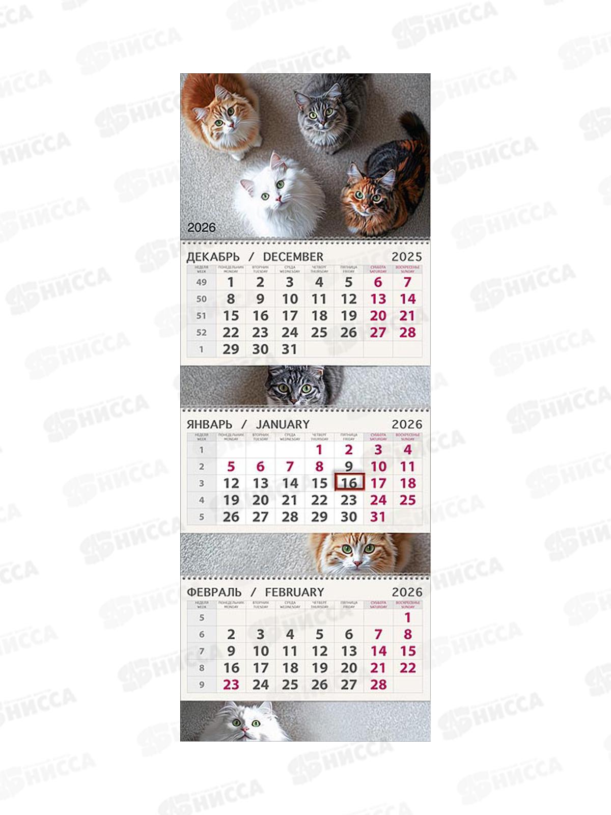 Календарь состоит из трех блоков по 12 отрывных листов каждый. На каждом блоке размещена календарная сетка отдельного месяца, что позволяет всегда видеть перед глазами предыдущий, текущий и следующий месяц. Блоки соединены с основой надежной спиралью для легкой смены месяцев. Для еще большего удобства календарь оснащен прозрачной лентой с передвижным курсором, который помогает быстро выделить сегодняшнюю дату и не потеряться в расписании. Верхний четвертый блок выполнен из картона, на нём размещена яркая тематическая иллюстрация, подчеркивающая индивидуальность каждой модели и добавляющая интерьеру визуальную привлекательность.
