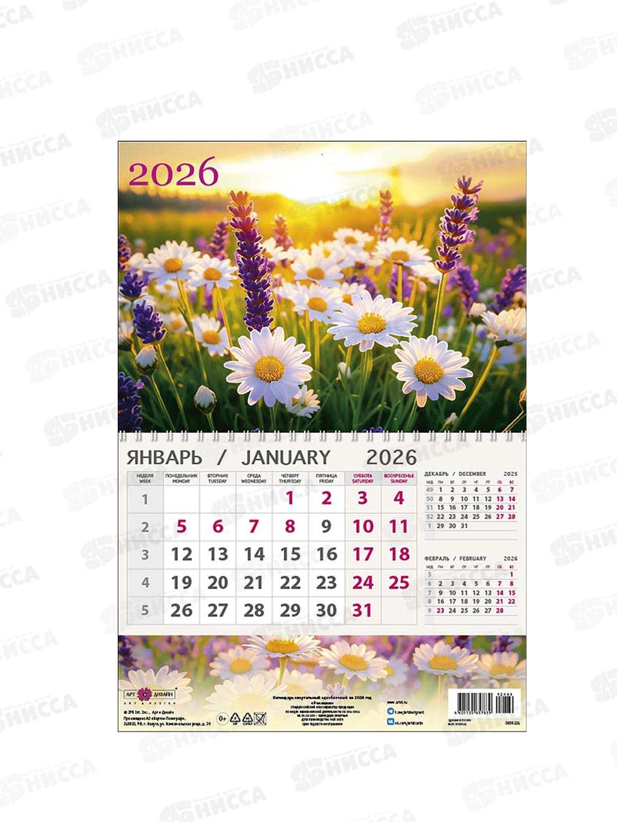Календарь АД 2026 кварт. 1бл. Ромашки 0609.124 295*210 *90