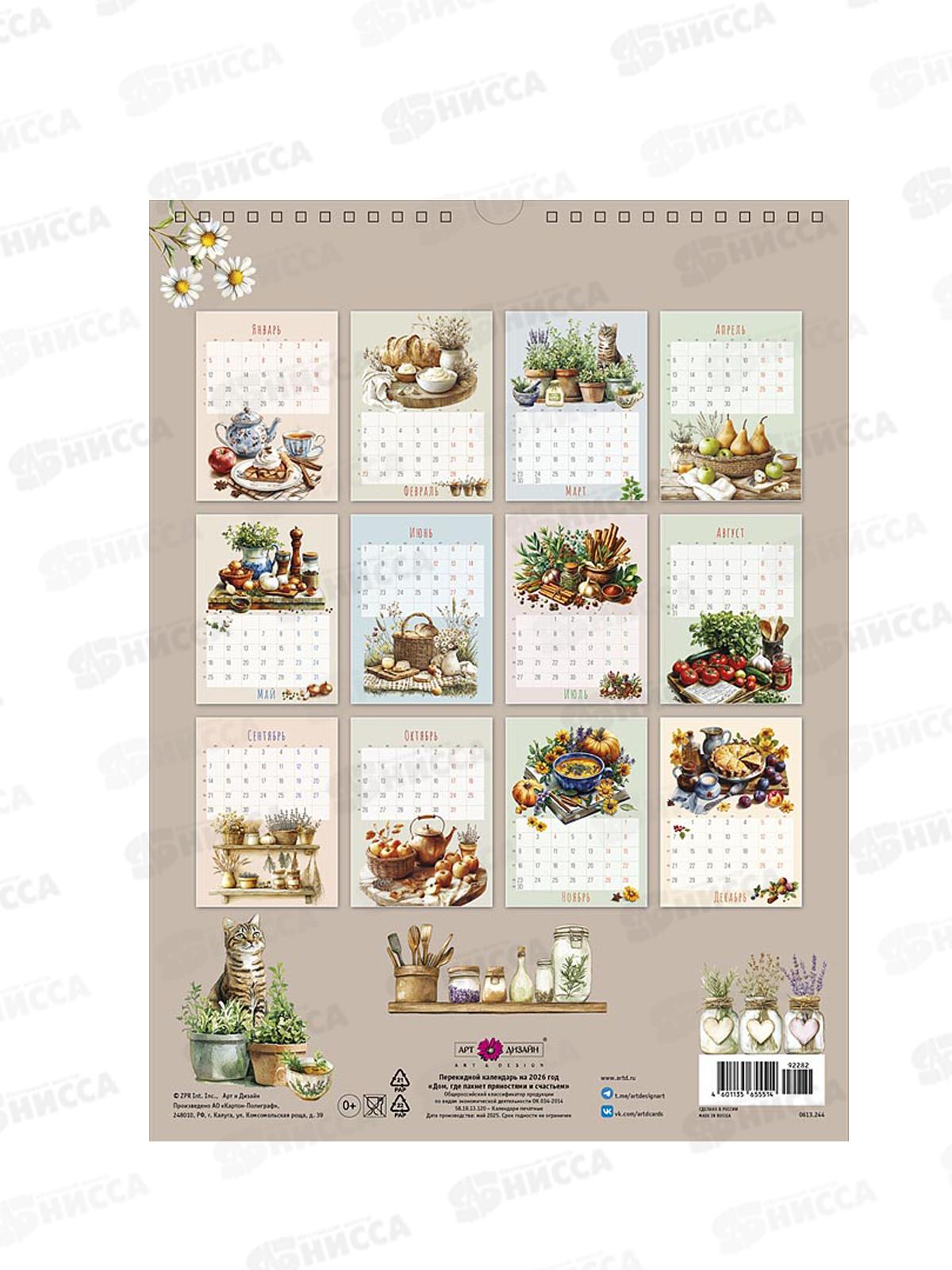 Каждый лист этого календаря на спирали— как новое настроение: вы раз в месяц встречаете свежую тематическую иллюстрацию, которая наполняет пространство уютом и вдохновляет на добрые перемены. Художественные изображения сочетаются с крупной календарной сеткой текущего месяца — всё, что важно, всегда перед глазами. Тёплые цвета, гармоничные сюжеты и тщательно продуманные детали делают календарь не только полезным помощником, но и украшением интерьера. Он органично впишется в любое помещение, добавив немного ярких акцентов и ощущение обновления. Листы соединены спиралью и дополнительно оснащены специальным крючком для удобного подвешивания на стену. Такой перекидной формат позволяет с лёгкостью перелистывать месяцы