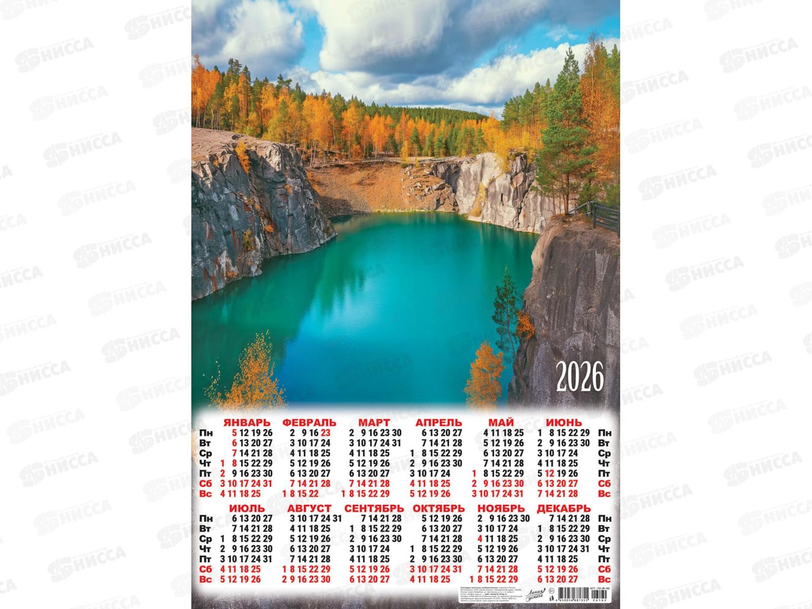 • Календарь листовой 2026 А2 ЛиС Природа. Лазурный каньон, ПО-26-162 *100