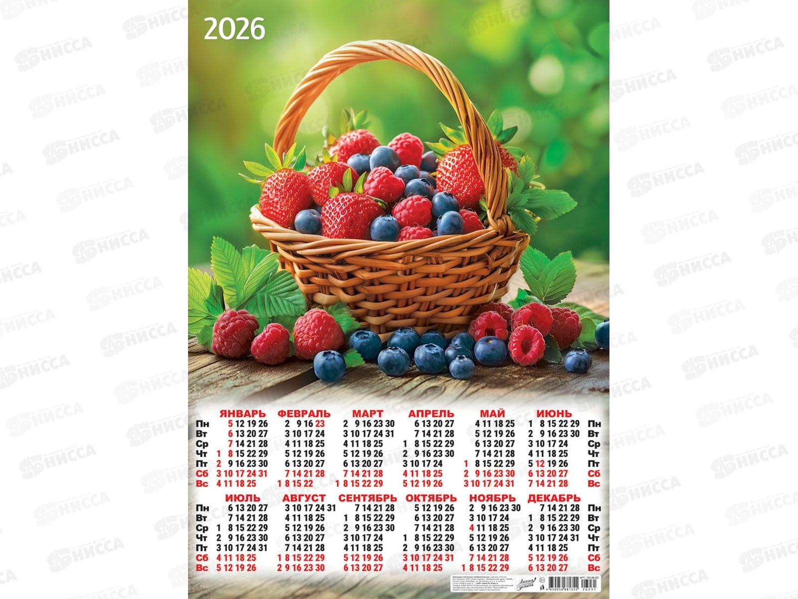 Календарь листовой 2026 А2 ЛиС Ягодная корзина, ПО-26-231 *100