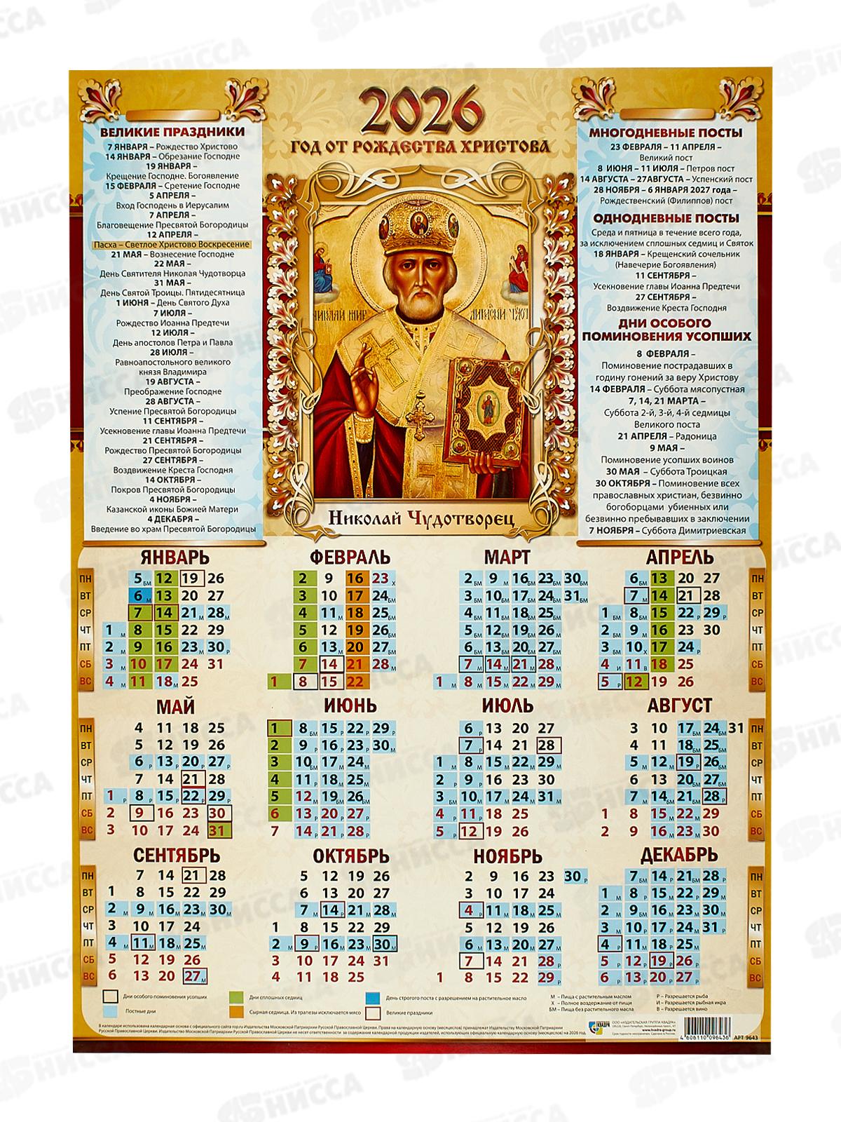 582510 Календарь листовой 2026 А2 КП Николай Чудотворец, 9643