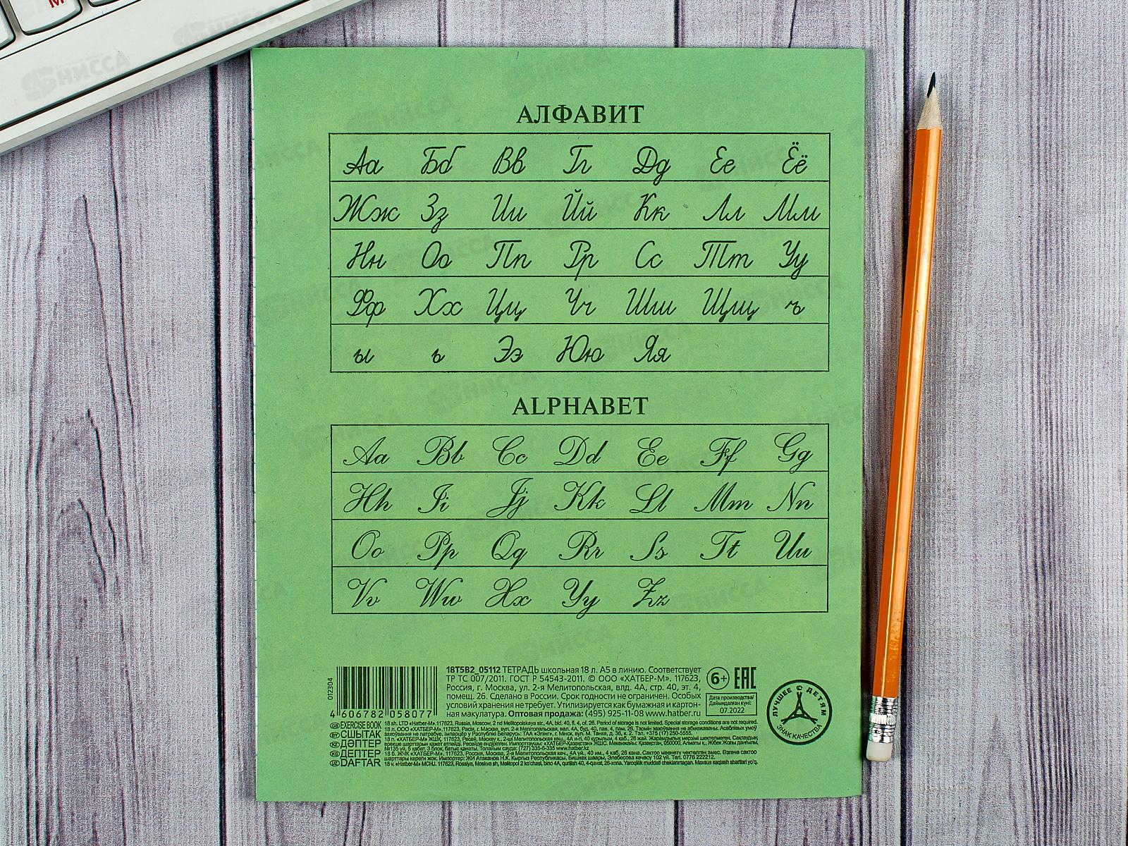 Тетрадь 18 листов линия Hatber зеленая обложка, 05112 *15/240