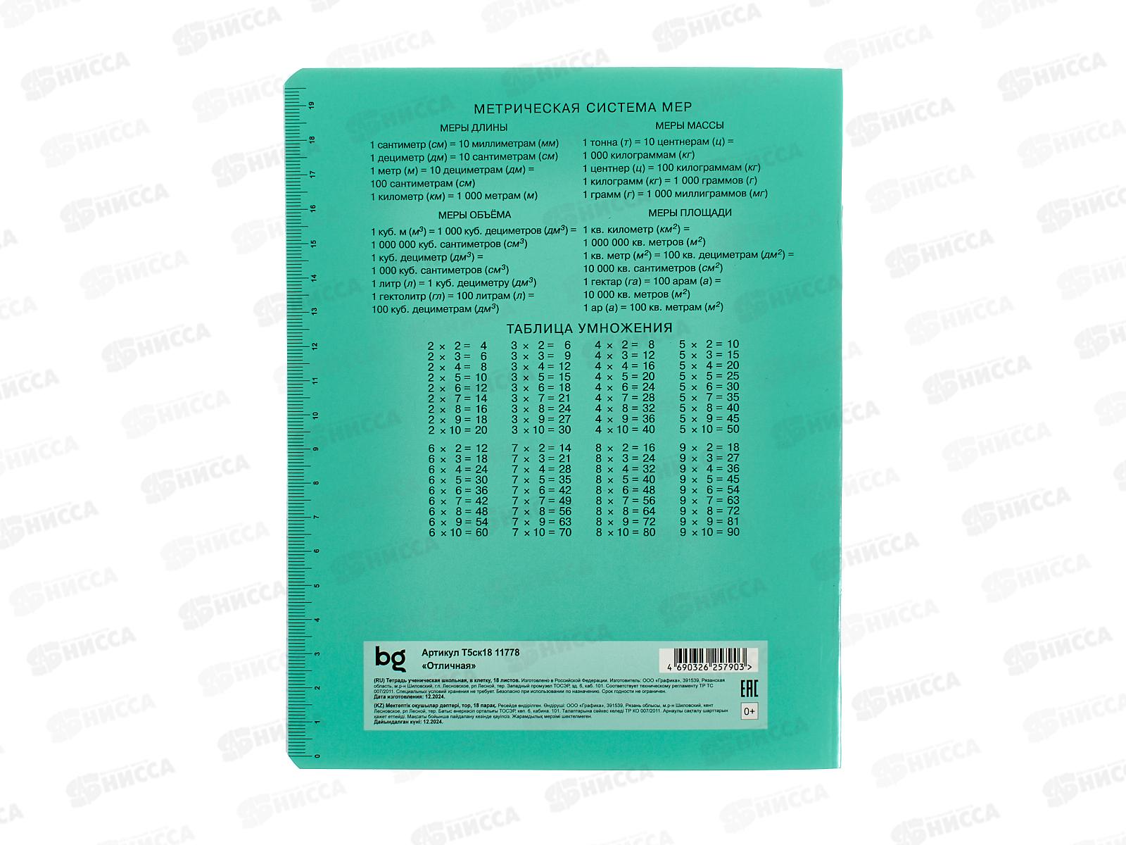 Тетрадь 18 листов клетка BG Отличная зеленая, 11778 *10/140