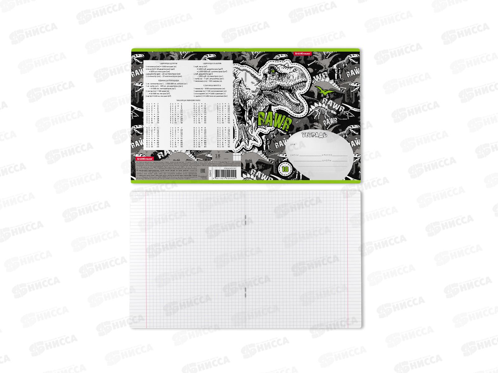 Тетрадь 18 листов клетка ПОЛИ Dinosaur park 52942 *10/200