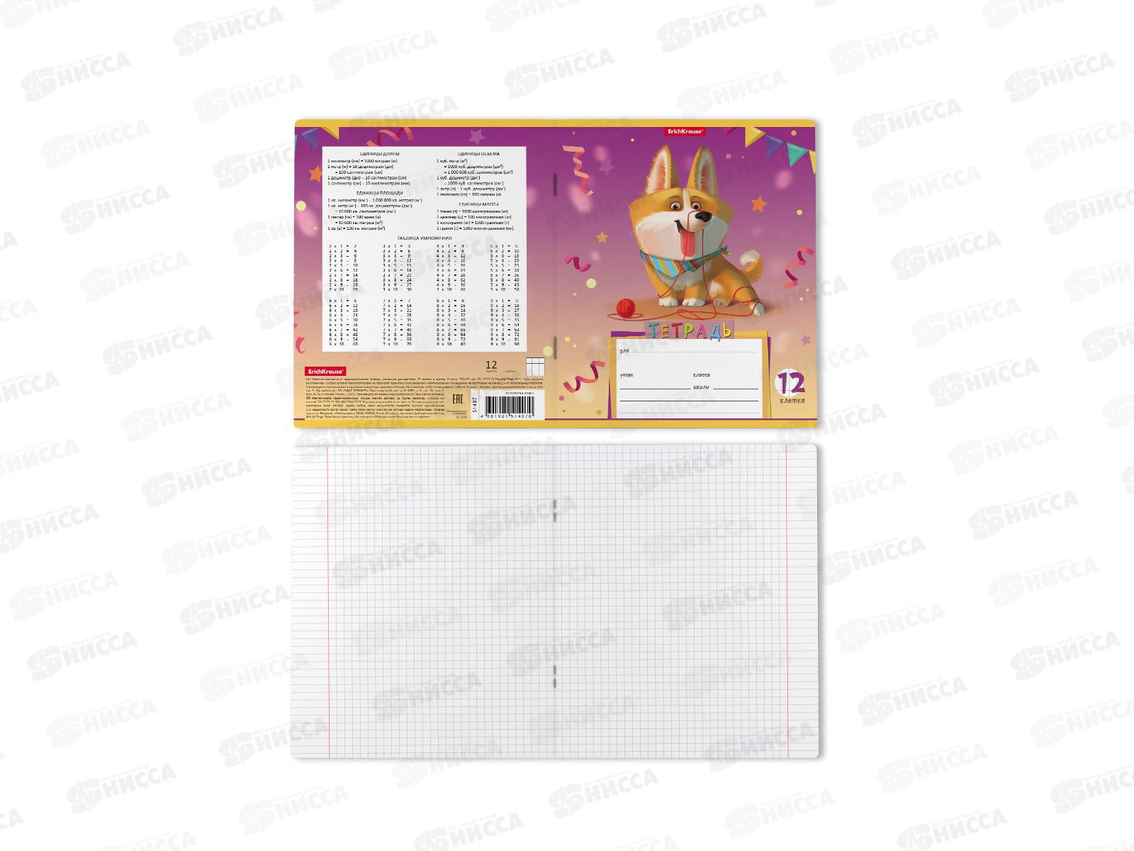 Тетрадь 12листов клетка ПОЛИ Корги 51407 *10/280