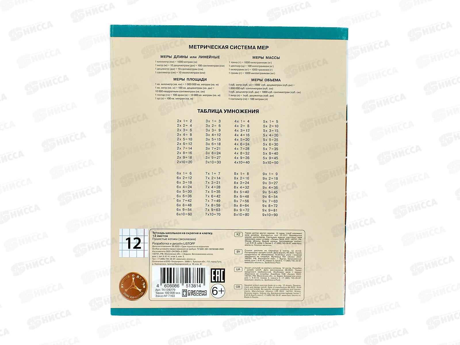 Тетрадь 12листов клетка ЭКСМ Пушистые котики ТК128279 *100