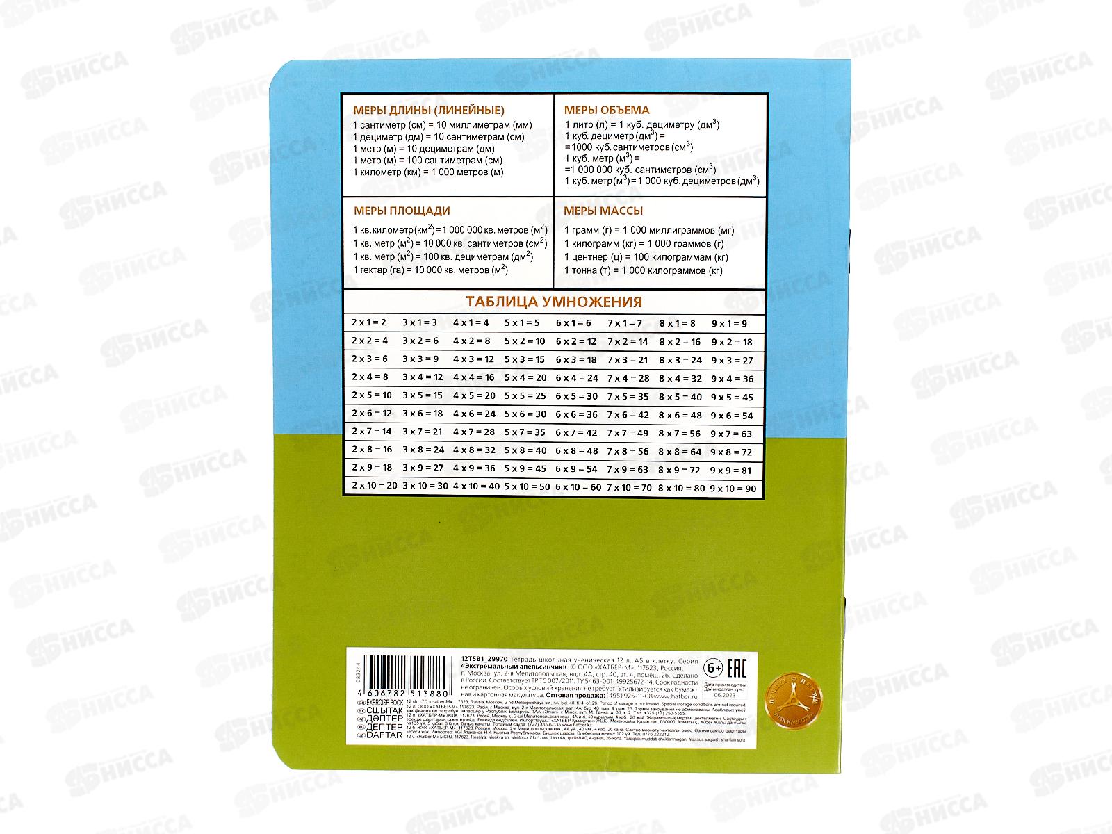 Тетрадь 12листов клетка Hatber Экстримальный апельсинчик 083244 *10/140
