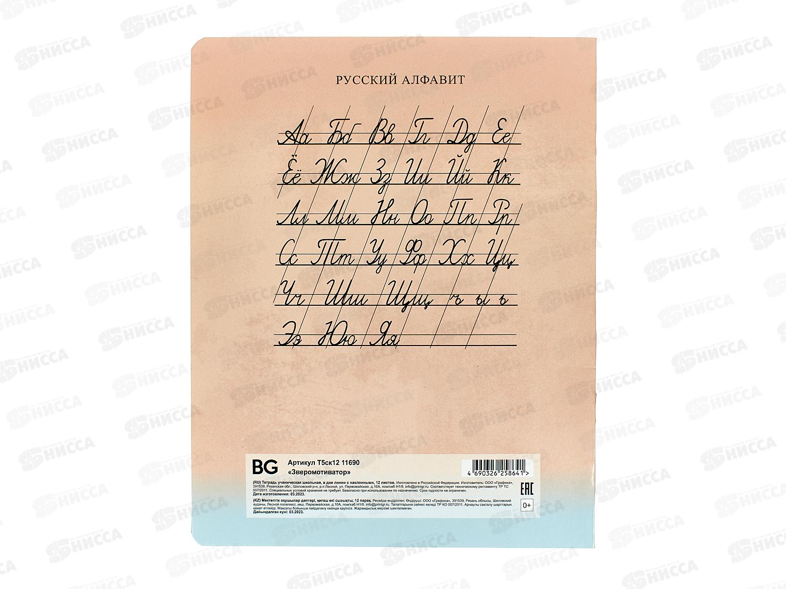 Тетрадь 12л в кос.лин. BG Зверомотиватор 11690*16/160