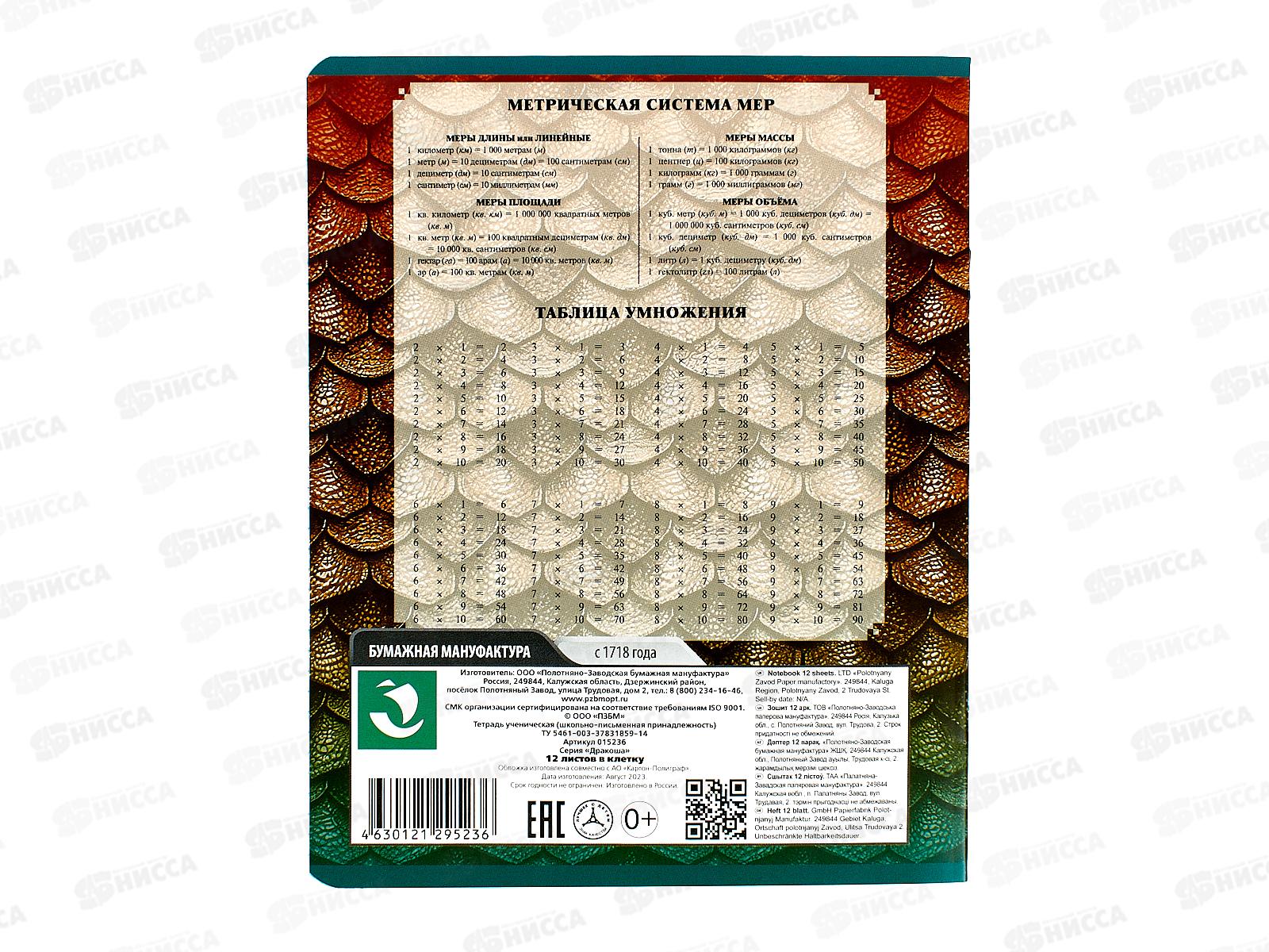 Тетрадь 12листов клетка ПЗБМ Дракоша 15236*20/120