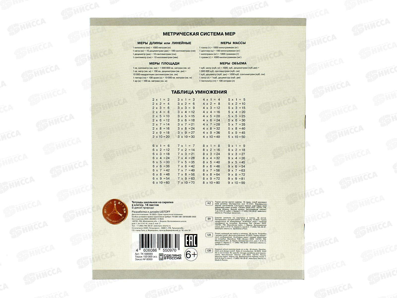 Тетрадь 18листов клетка ЭКСМ В дикой природе ТК188889 *80