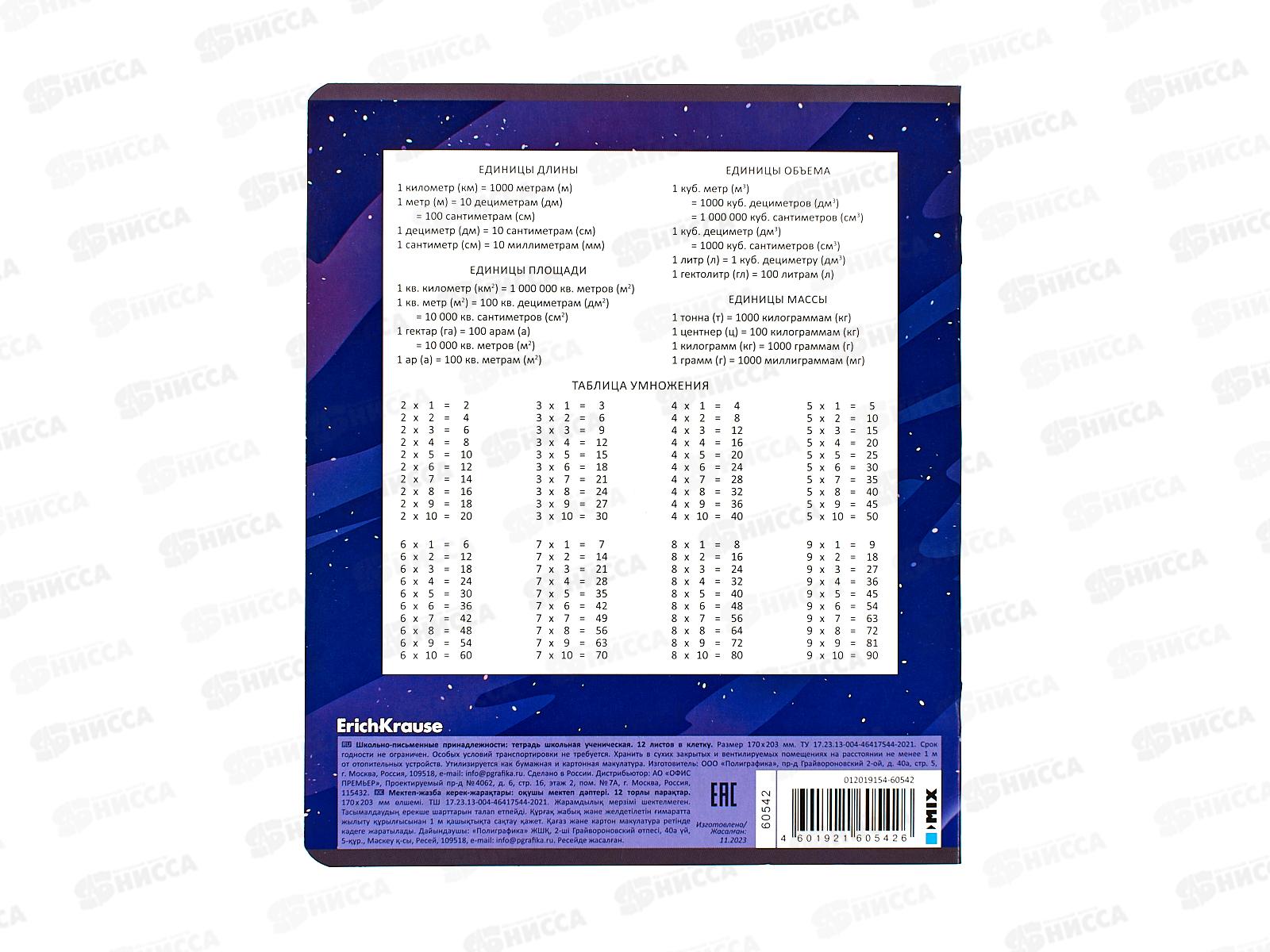 Тетрадь 12листов клетка ПОЛИ Русский космос,60542*10/280