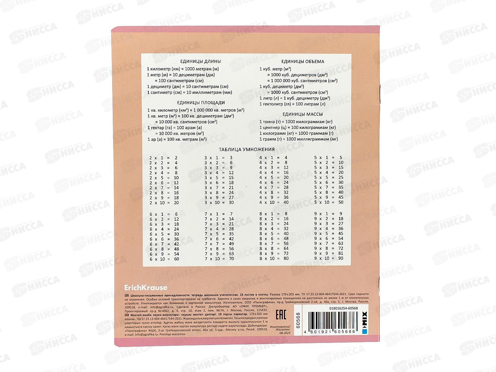 Дизайн задней обложки: таблица умножения, метрическая система мер
