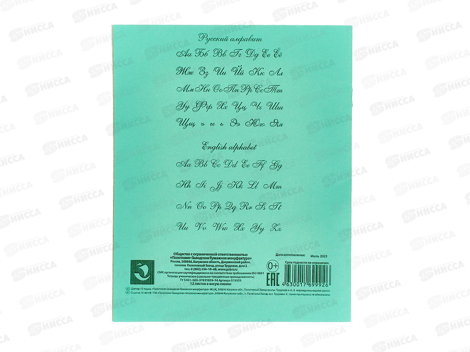 Тетрадь 12листов в косую линию ПЗБМ 019926*300