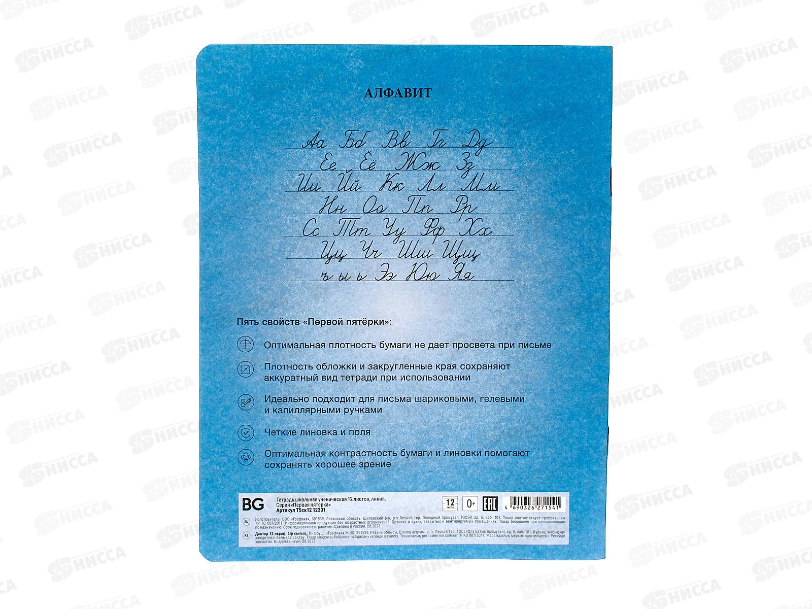 Тетрадь 12листов линия BG Первая пятерка 12301*10/180