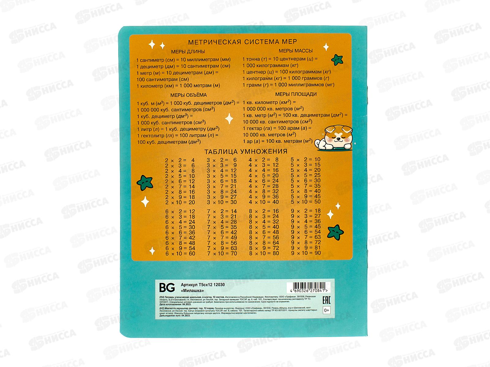 Тетрадь 12листов клетка BG Милашка 12030 *16/160