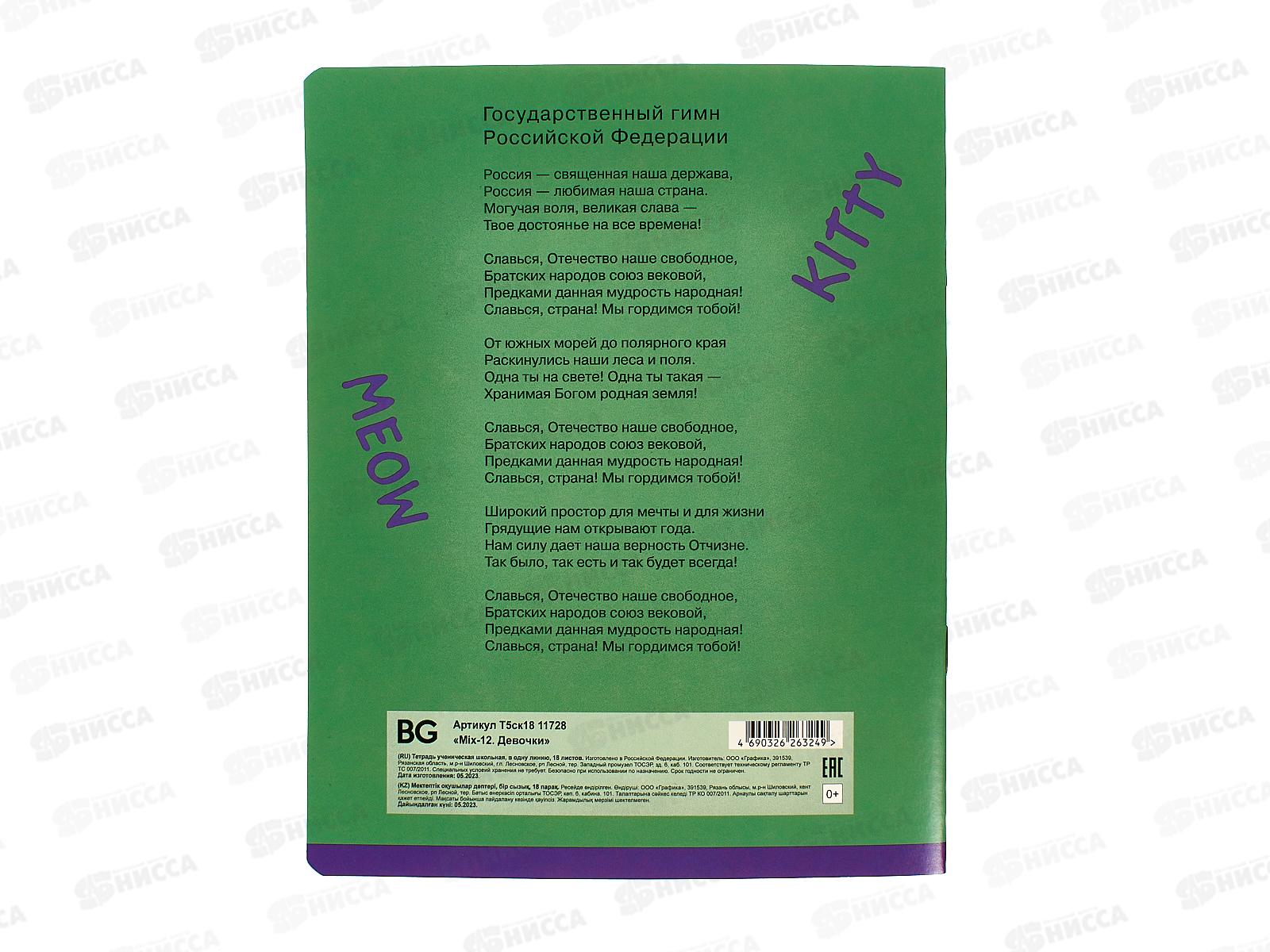 Тетрадь 18листов линия BG Mix-12 Девочки 11728 *12/144