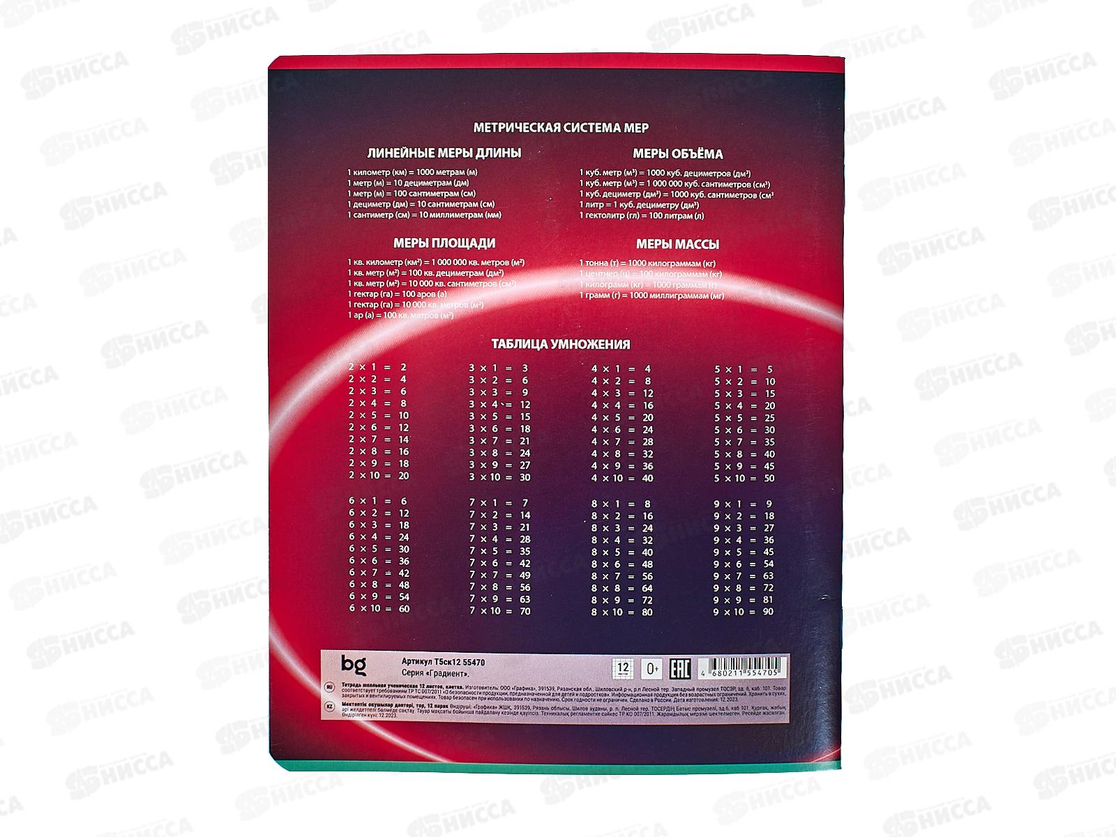 Тетрадь 12листов клетка BG Градиент,55470 *15/150