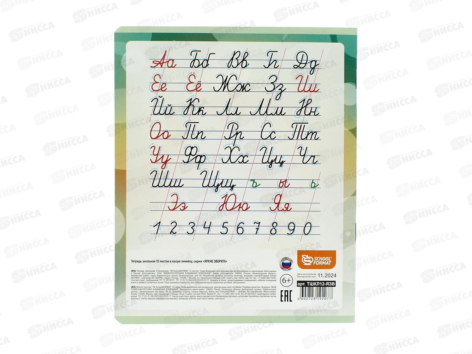 Тетрадь 12л кос.лин schoolФОРМАТ Яркие зверята, ТШКЛ12-ЯЗВ *12/240