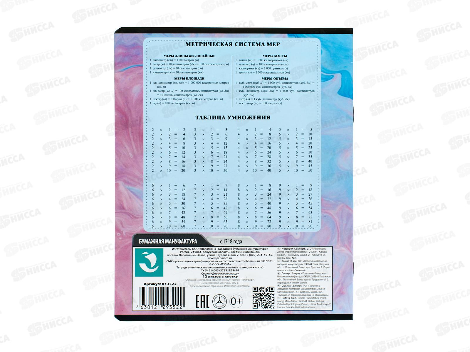 Тетрадь 12л кл. ПЗБМ Девочка- Леопард, 013522 *10/120