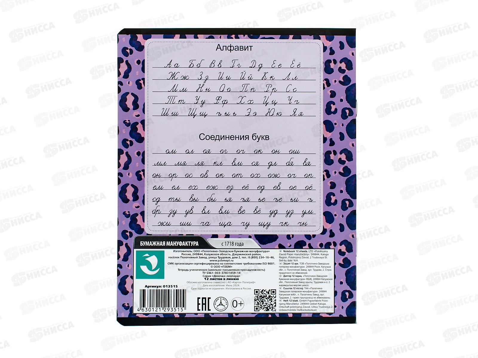 Тетрадь 12л лин. ПЗБМ Девочка- Леопард, 013515 *10/120