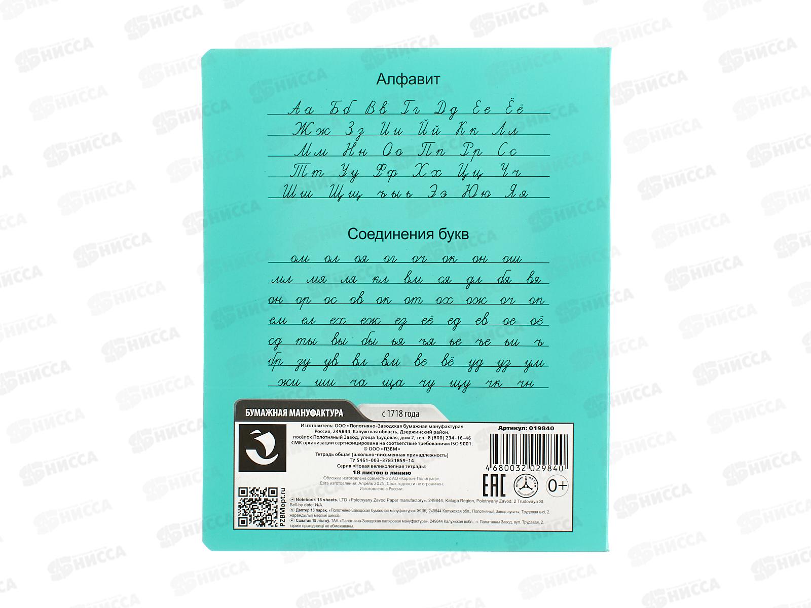 Тетрадь 18л лин. ПЗБМ Новая великолепная тетрадь,зелен,019840 *20/200