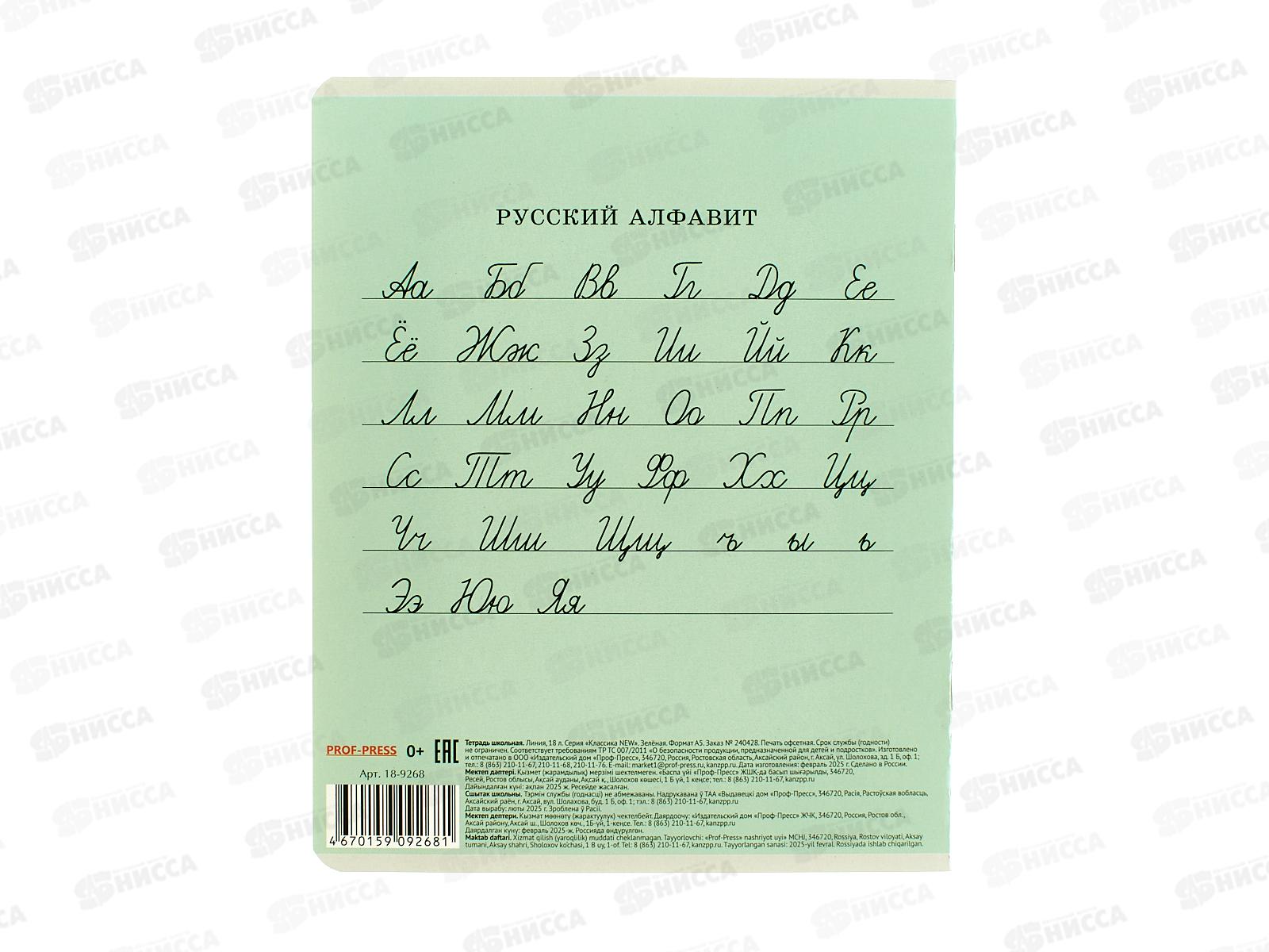 Тетрадь 18л линия ПП Классика NEW зеленая, мелов. обл., 18-9268 *10/160