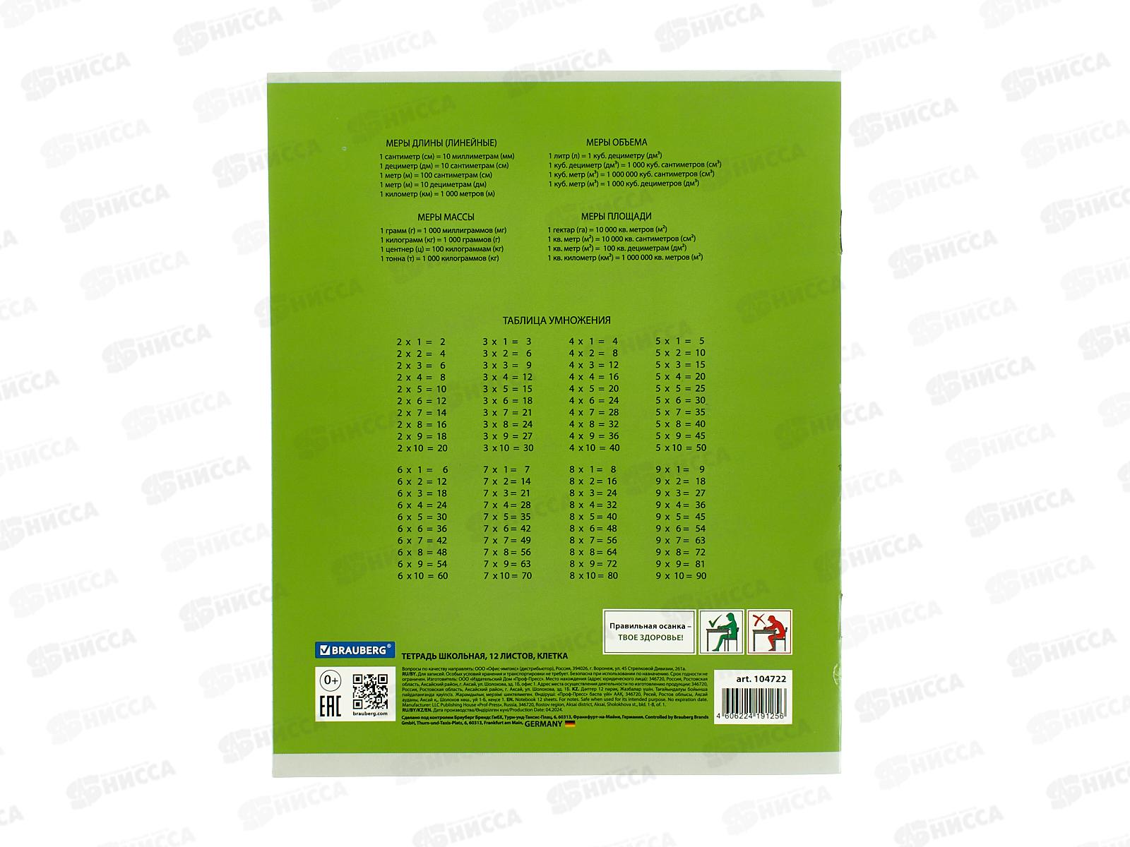 Тетрадь 12л кл. BRAU Классика, зеленая., 104722 *20/280