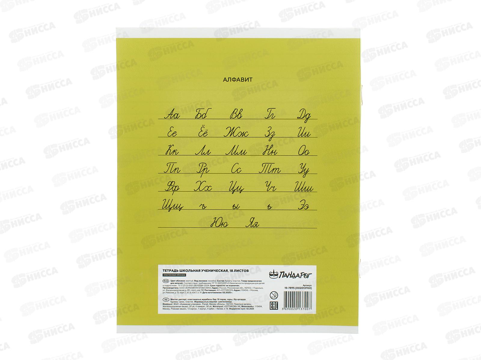 Тетрадь 18л лин. ПандаРог, плас. прозр. обложка, желтая 15-7895 *120