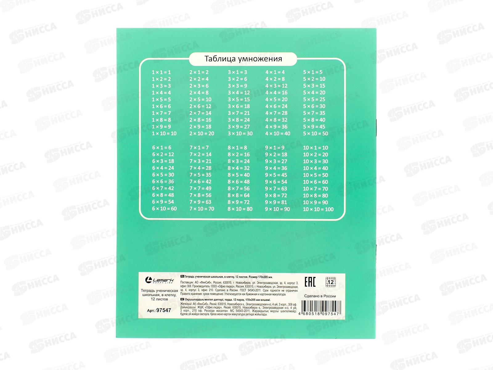 Тетрадь 12л кл. Lamark Классная NEW, зеленая 97547 *10