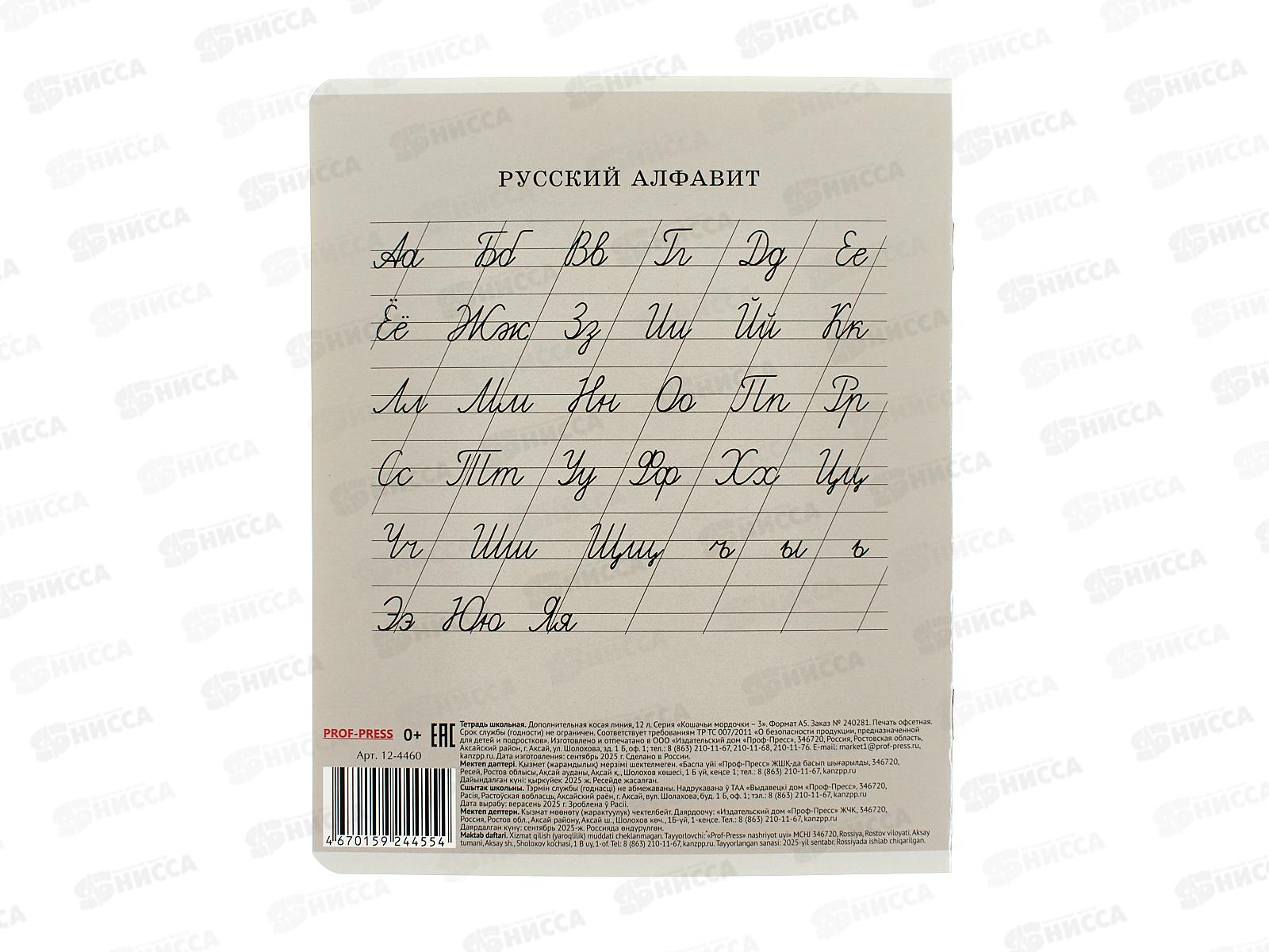Тетрадь 12л доп. косая линия ПП Кошачьи мордочки - 3, 5 диз., 12-4460 *20/240