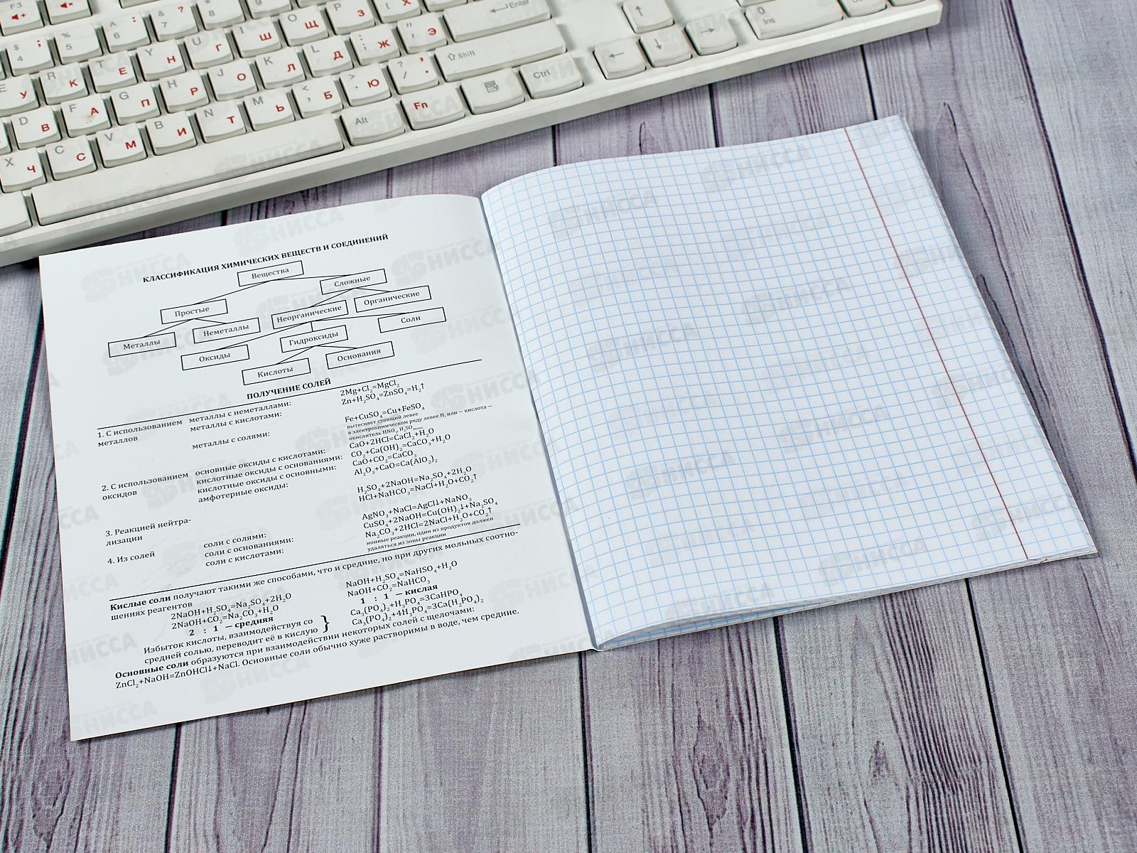 Внутри расположен справочный материал с подсказками по соответствующему школьному предмету. Цветная мелованная обложка, внутренний блок: офсет 60 г/м 100 % белизны, 36 листов. Линовка: клетка.