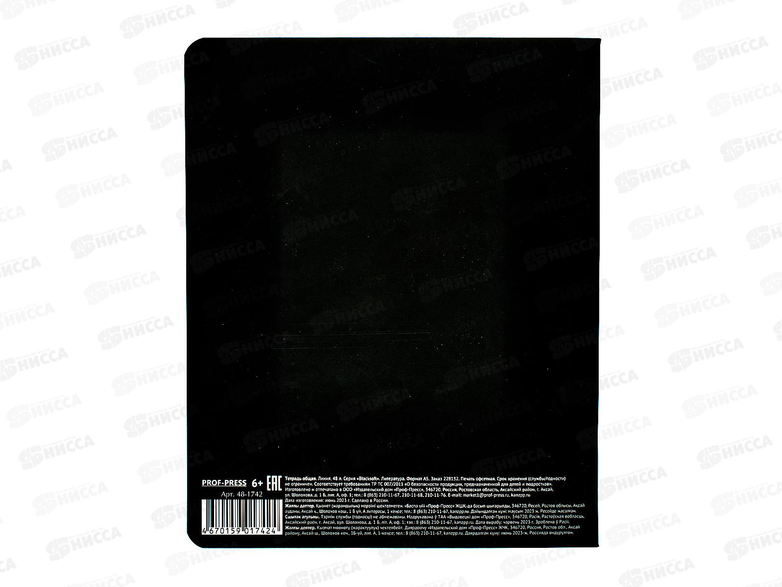 Тетрадь 48л лин. ПП "BLACKSOFT" Литература, 48-1742 *10/80