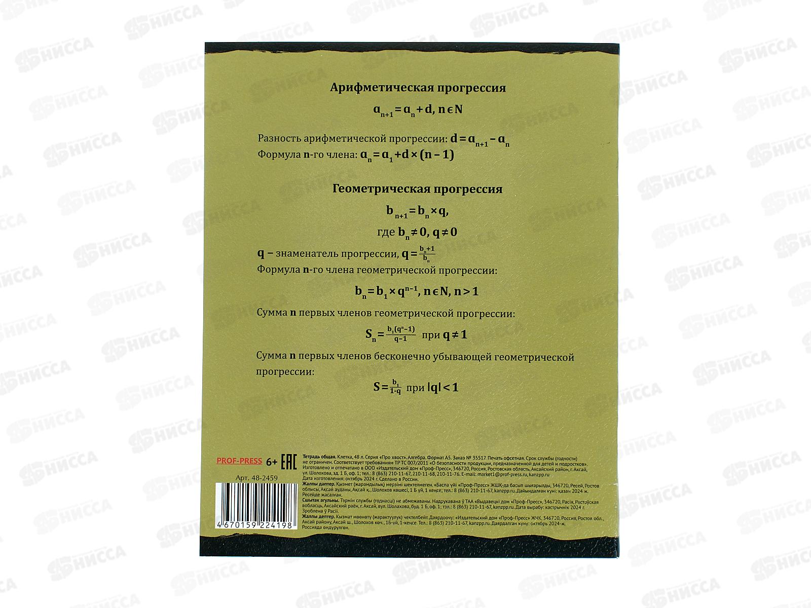 Тетрадь 48л клетка ПП "ПРО ХВОСТ" Алгебра, 48-2459 стандарт *10/80