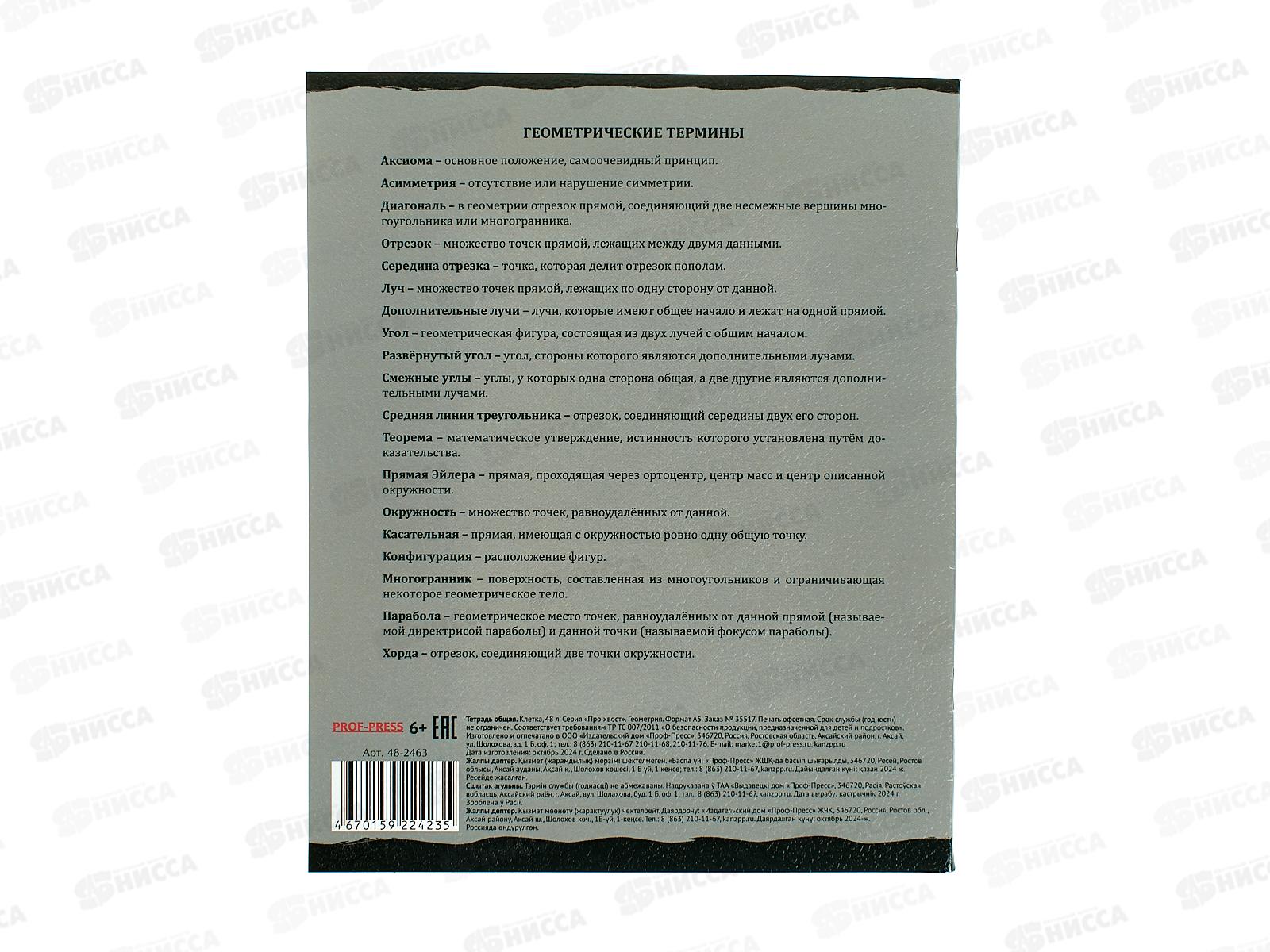 Тетрадь 48л кл. ПП "ПРО ХВОСТ" Геометрия, 48-2463 стандарт *10/80