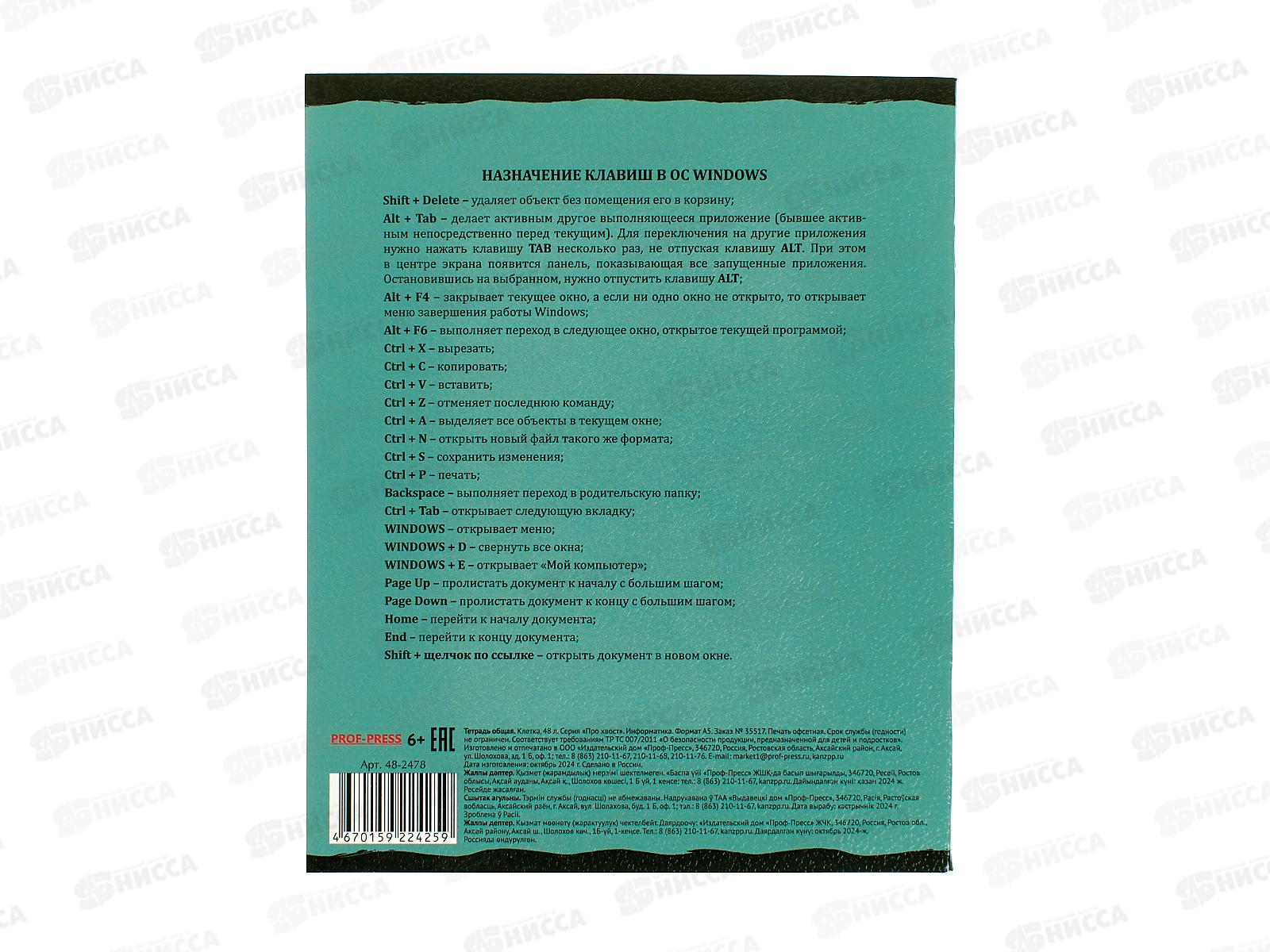 Тетрадь 48л клетка ПП "ПРО ХВОСТ" Информатика, 48-2478 стандарт *10/80