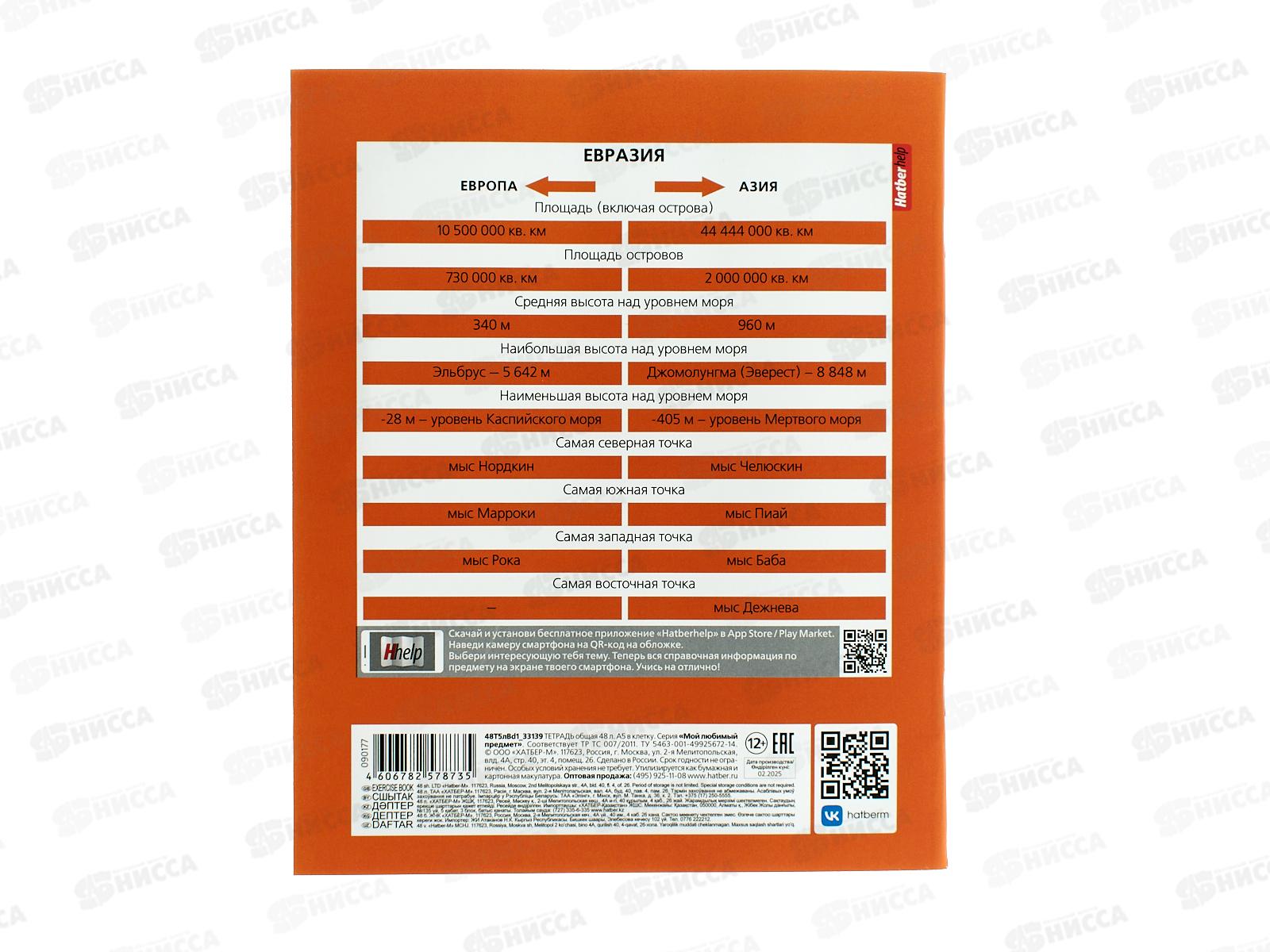 Тетрадь 48л кл. ХАТ Мой любимый предмет Георгафия 33139 *12/180