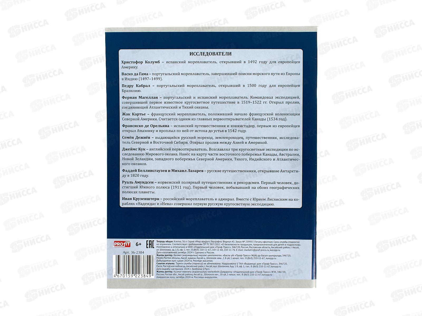 Тетрадь 36л клетка Profit "Мир вокруг" География, эконом, 36-2384 *10/80