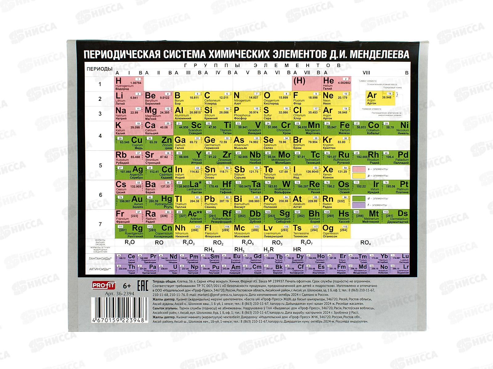 Тетрадь 36л кл. Profit "Мир вокруг" Химия, эконом, 36-2394 *10/80