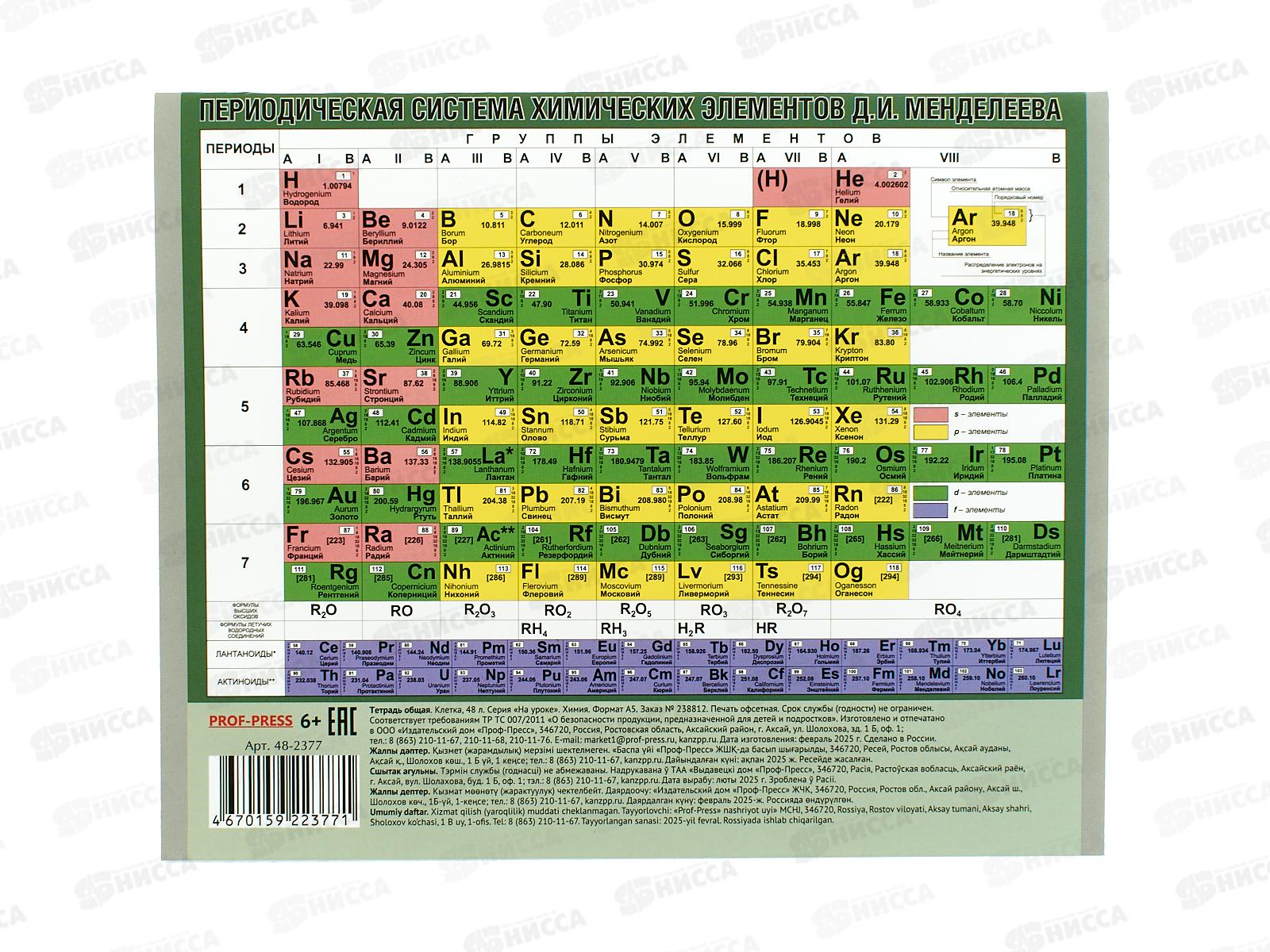 Тетрадь 48л клетка ПП "На уроке" Химия, 48-2377 софт-тач *80