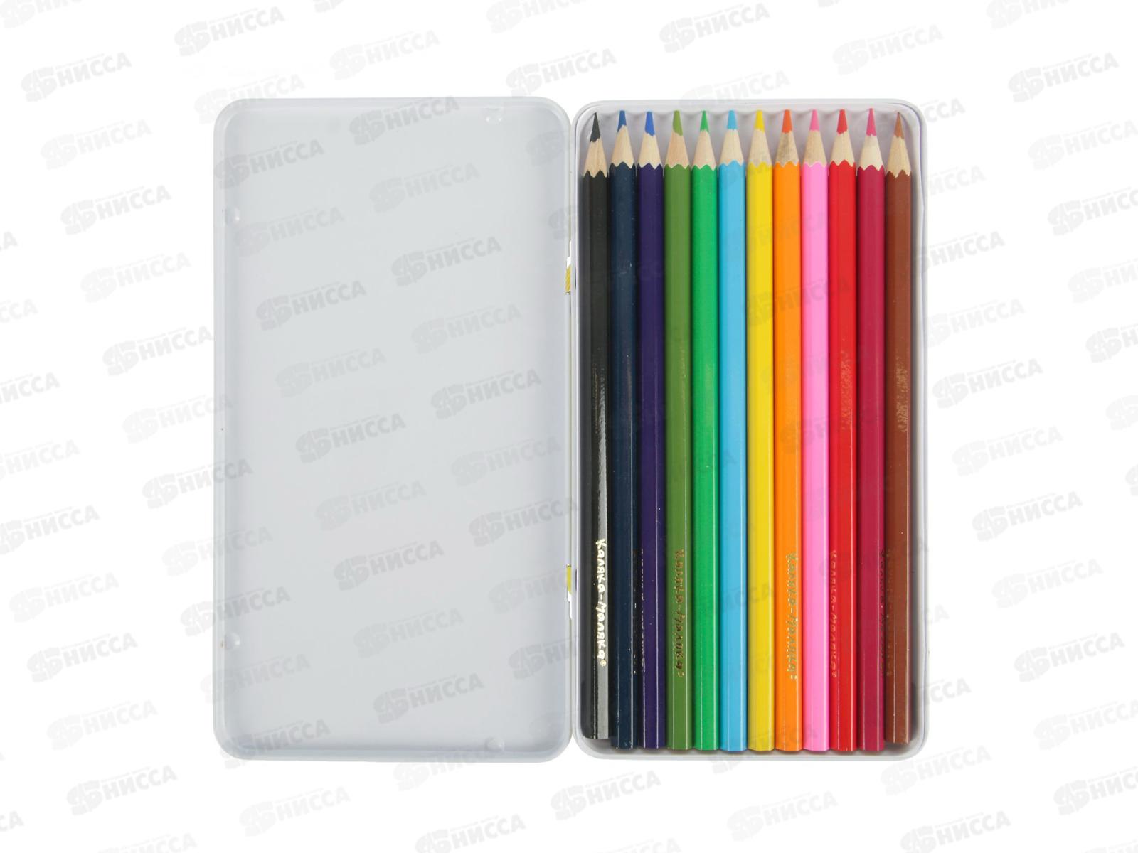 Карандаши 12 цветов Каляка-Маляка металлический пенал, ККМ12П *12/120