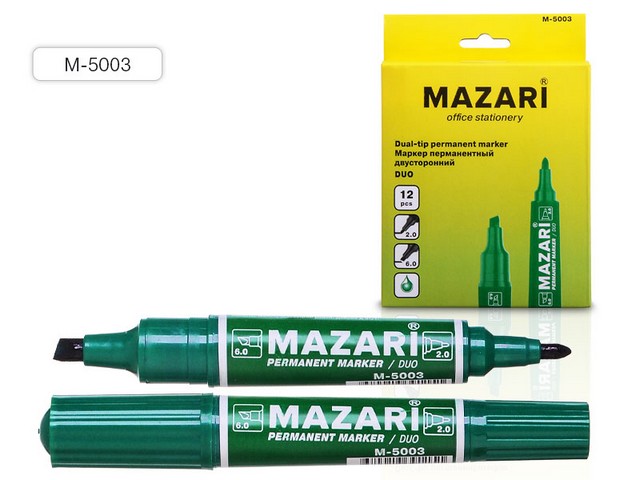 Маркер MAZARI Duo перманентный двусторонний , 2/6мм, зеленый, M-5003 *16