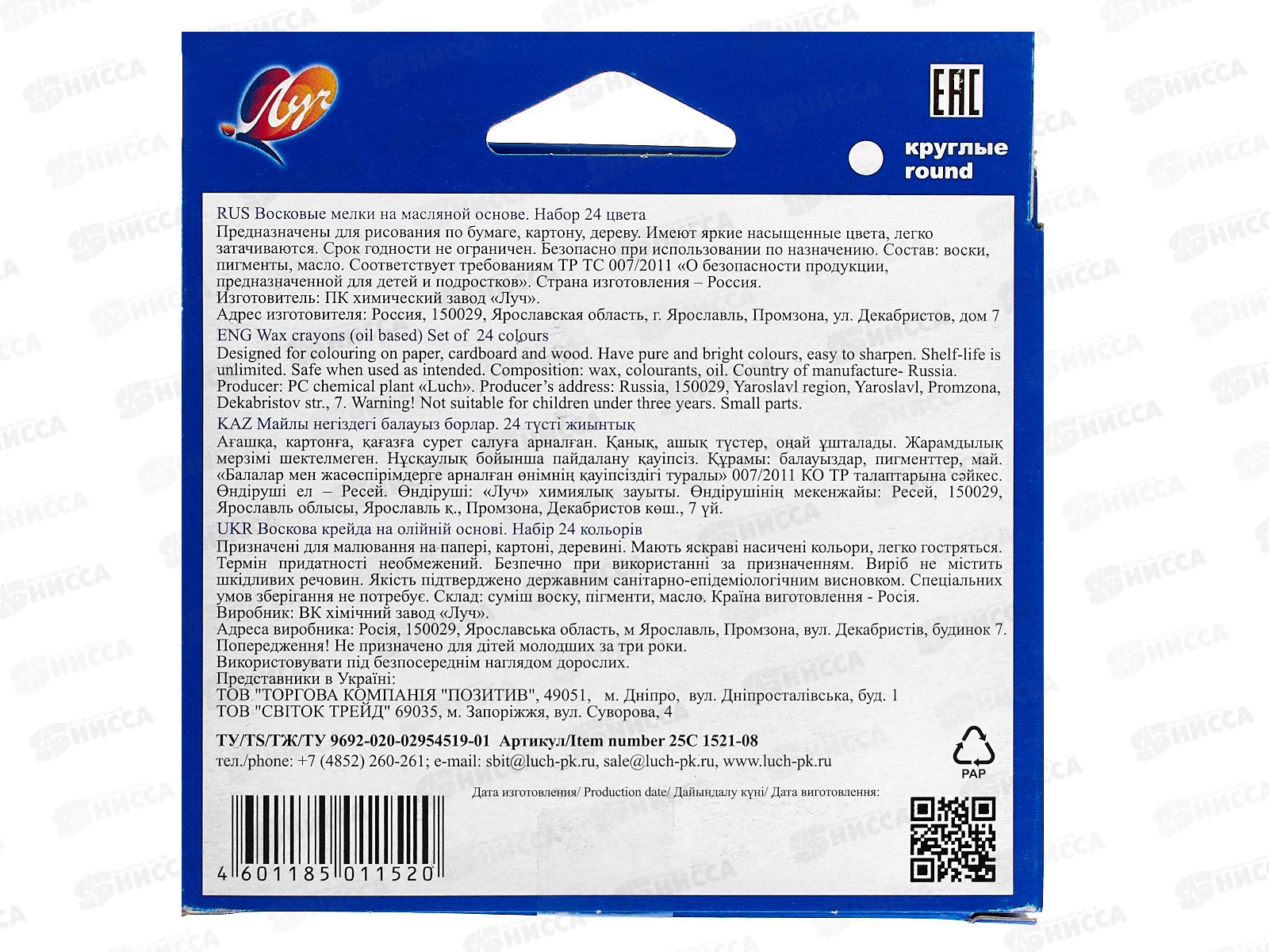 Мелки восковые ЛУЧ Фантазия 24 цвета, масляные, круглые , 25с1521-08 *36