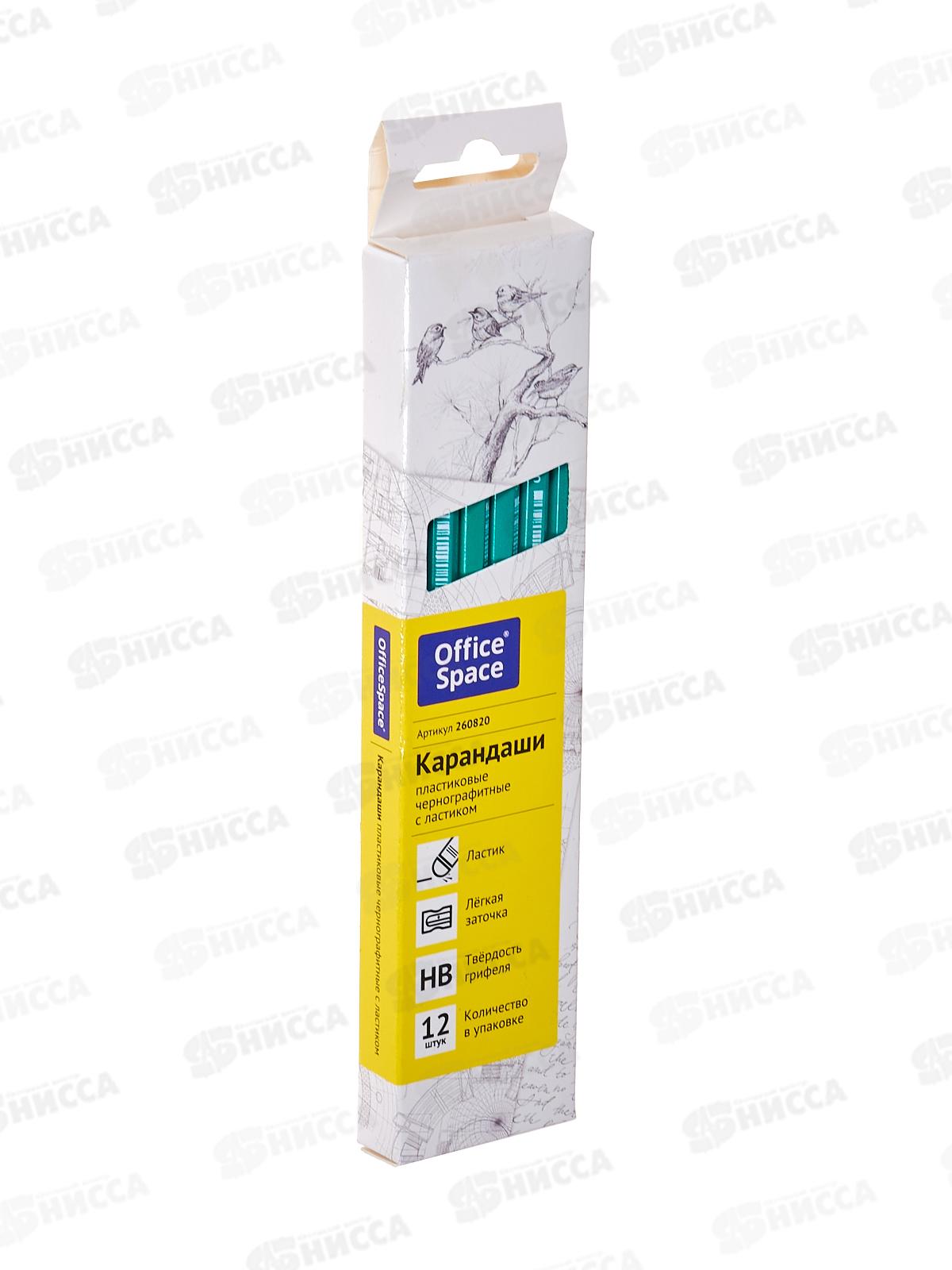 Карандаш чернографитный с ластиком OfficeSpace HB пластиковый ,260820 *12/72/1080