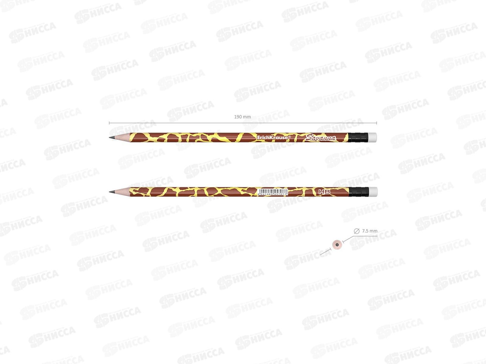 Карандаш от бренда ErichKrause "Savanna" - чернографитный карандаш круглого сечения с ластиком из отборной древесины, твердость НВ. Специальная пропитка древесины и сплошная проклейка грифеля обеспечивает высокую ударопрочность. Мягкая древесина и идеальная центровка грифеля гарантируют легкую заточку с экономным расходом карандаша. Грифель диаметром 2,2 мм не царапает бумагу и не крошится. Ластик карандаша средней жесткости изготовлен из экологически чистого и гипоаллергенного материала термопластичной резины (TPR). Не содержит ПВХ.