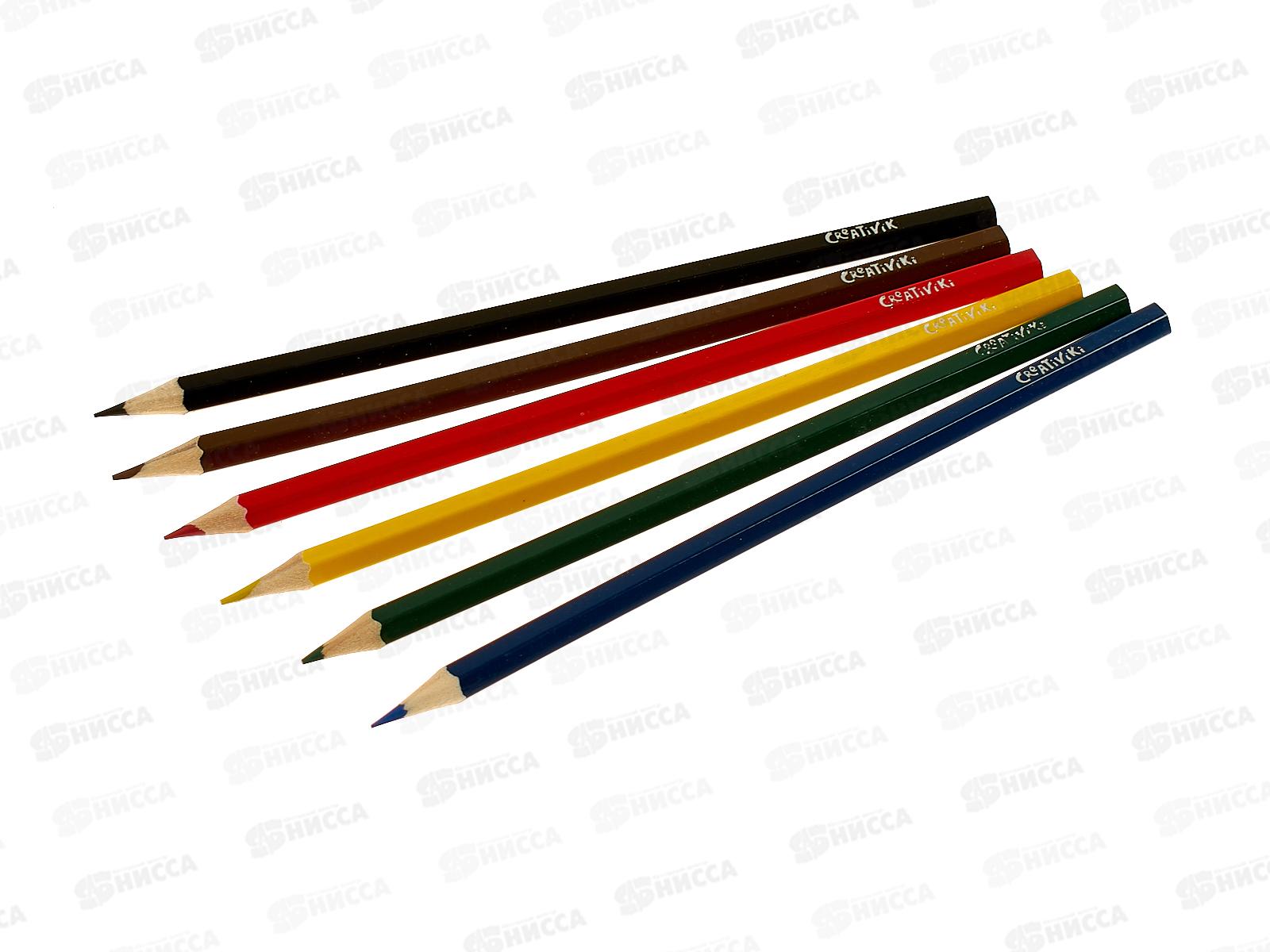 Карандаши 6цветов Creativiki шестигранный дерево КЦ06КР*24/480