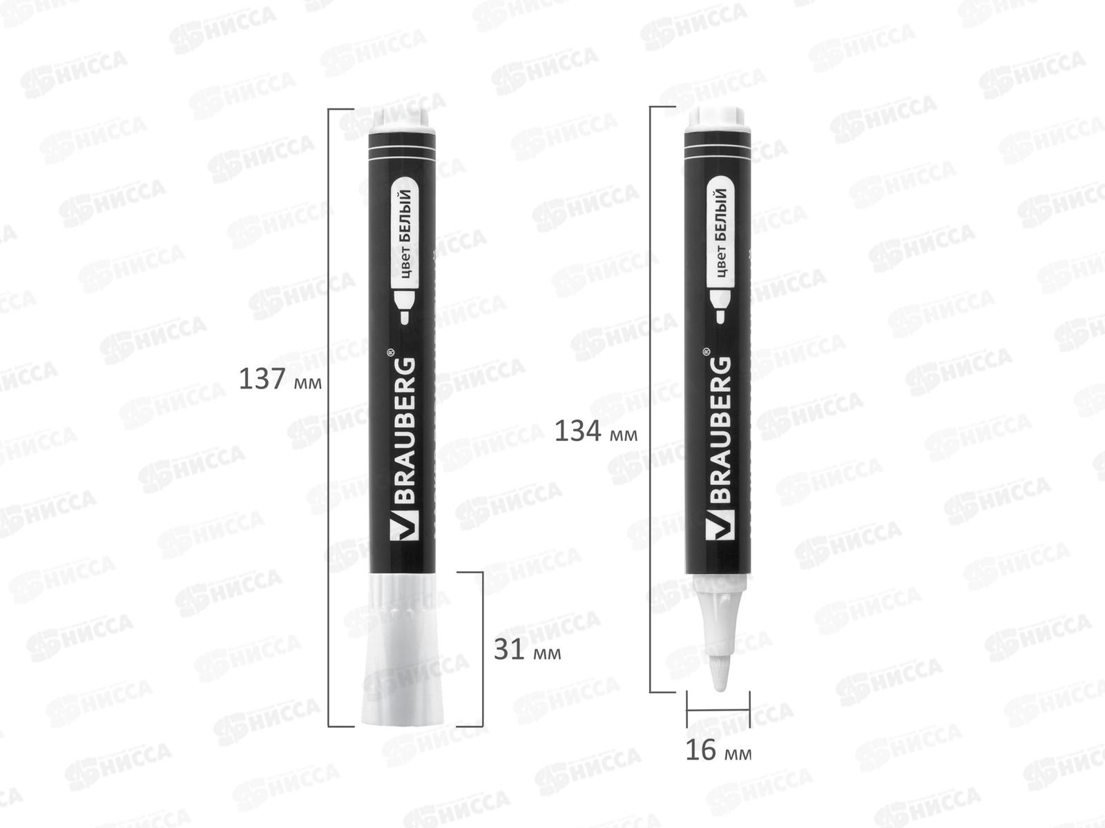Маркер перманентный Brauberg "W5" предназначен для письма на любой гладкой поверхности: бумага, полиэтилен, древесина, стекло, металл, натуральная кожа, ткань, камень, плитка. Маркер перманентный белого цвета обладает круглой формой корпуса из пластика, диаметр которого 16 мм. Толщина линии письма — 5 мм. Основа чернил — водная. Фетровый наконечник обеспечивает экономный расход чернил. Изделие не перезаправляется. Плотно закрывается колпачком, что предотвращает высыхание наконечника и чернил. Цвет колпачка соответствует цвету чернил.