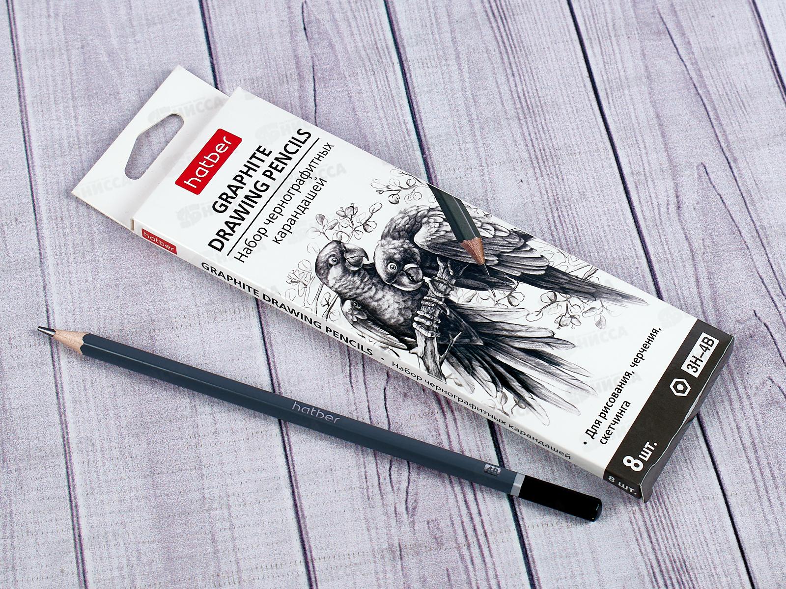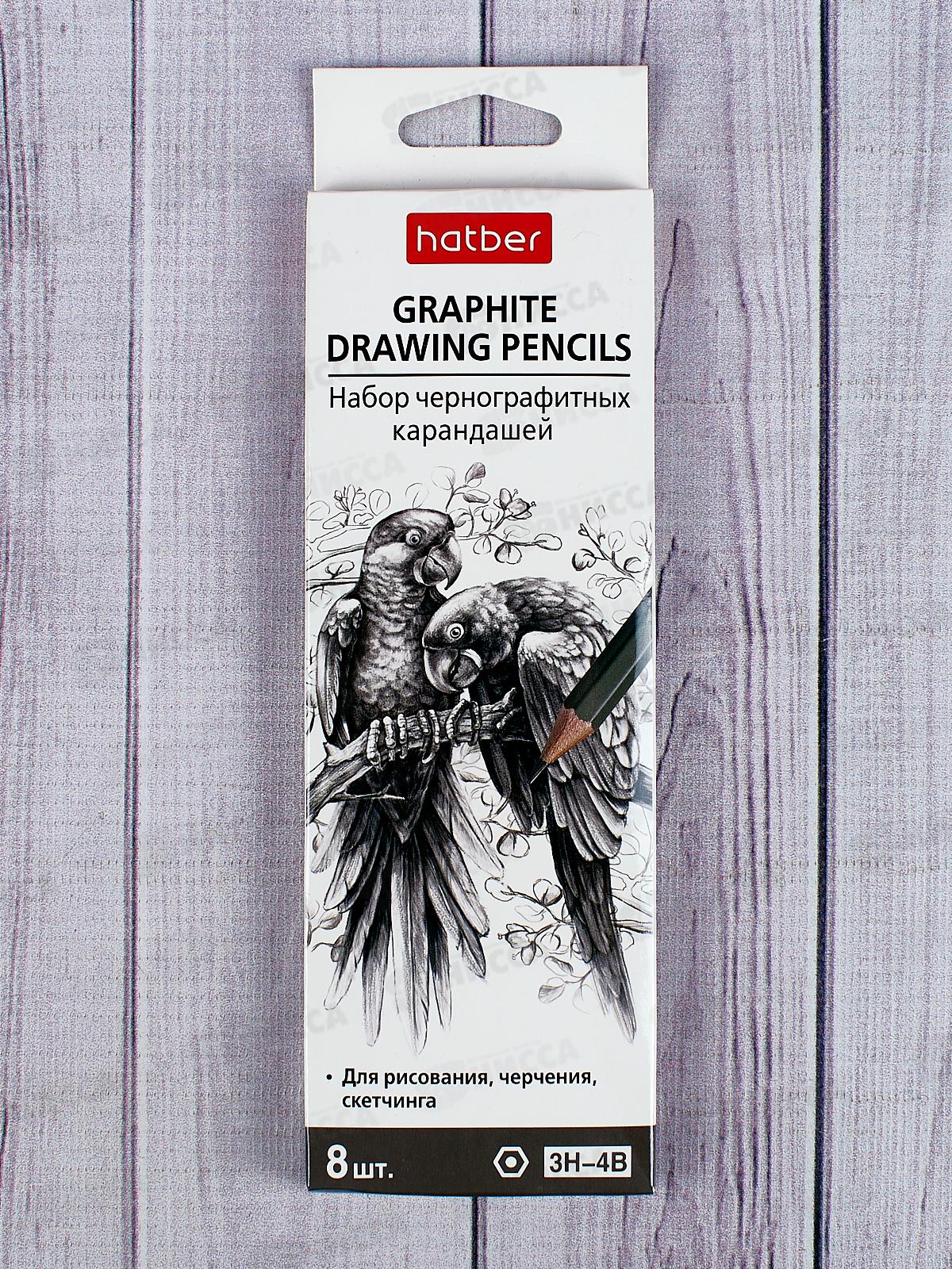 Набор чернографитных карандашей включает в себя 8 чернографитных карандаша разной твердости. В карандашах используется древесина soft poplar, благодаря которой карандаши легко точатся, а проклеенный по всей длине корпус защищает грифель от поломки. Набор идеально подходит для письма, рисования, черчения и скетчинга. Заводская заточка. Упаковка - картонная коробка с европодвесом.