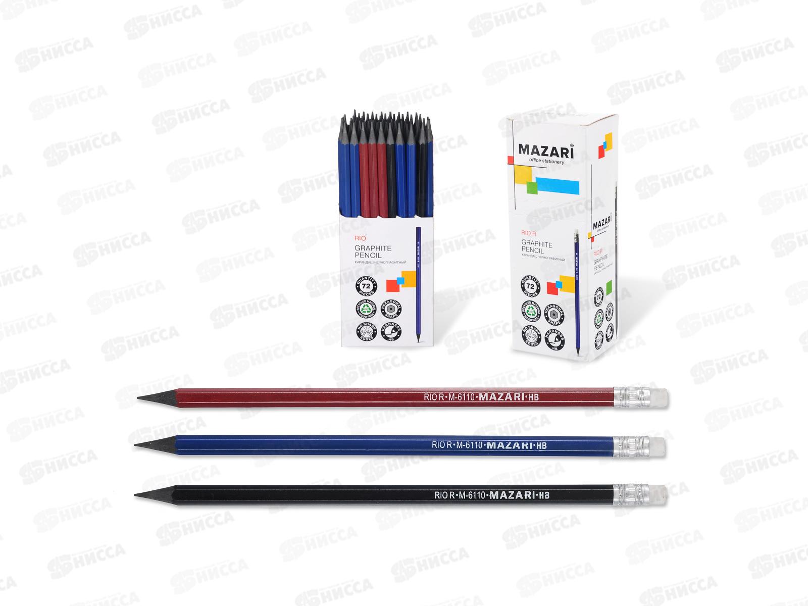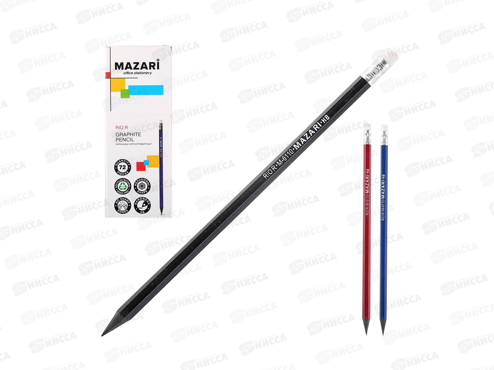 Карандаш чернографитный с ластиком. MAZARI Rio R HB, пл., M-6110 *1/72/1152